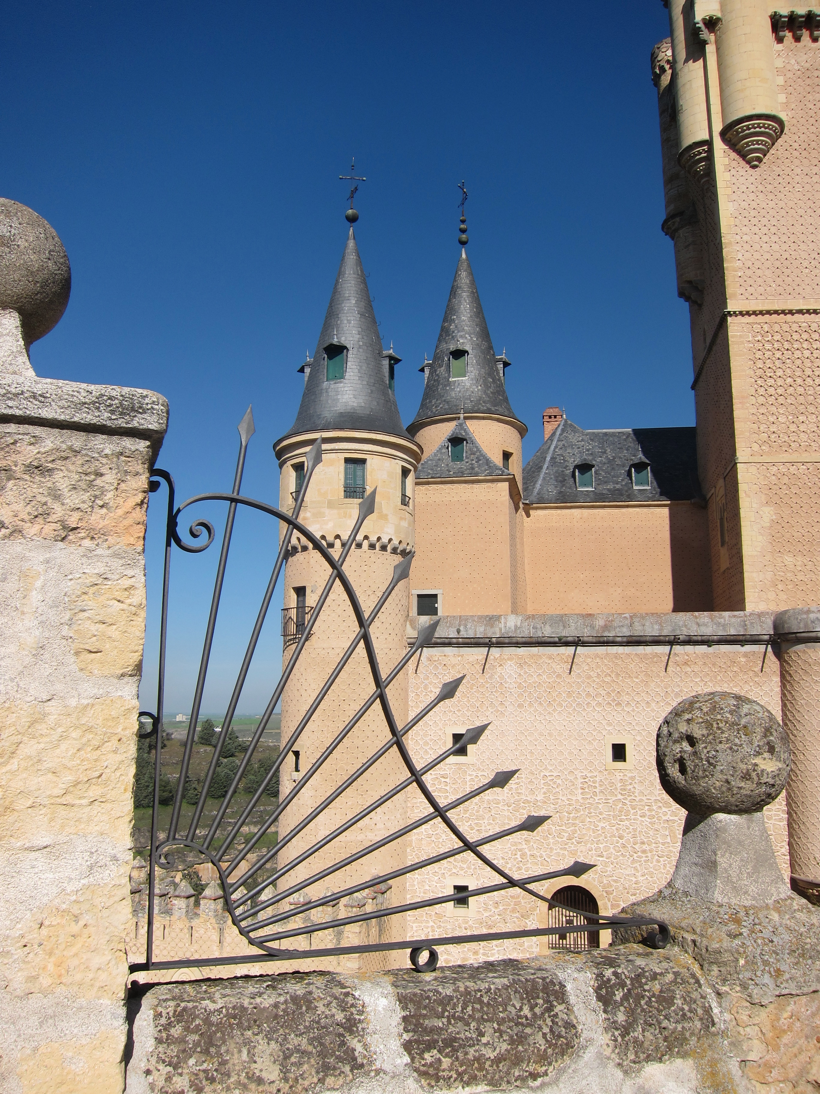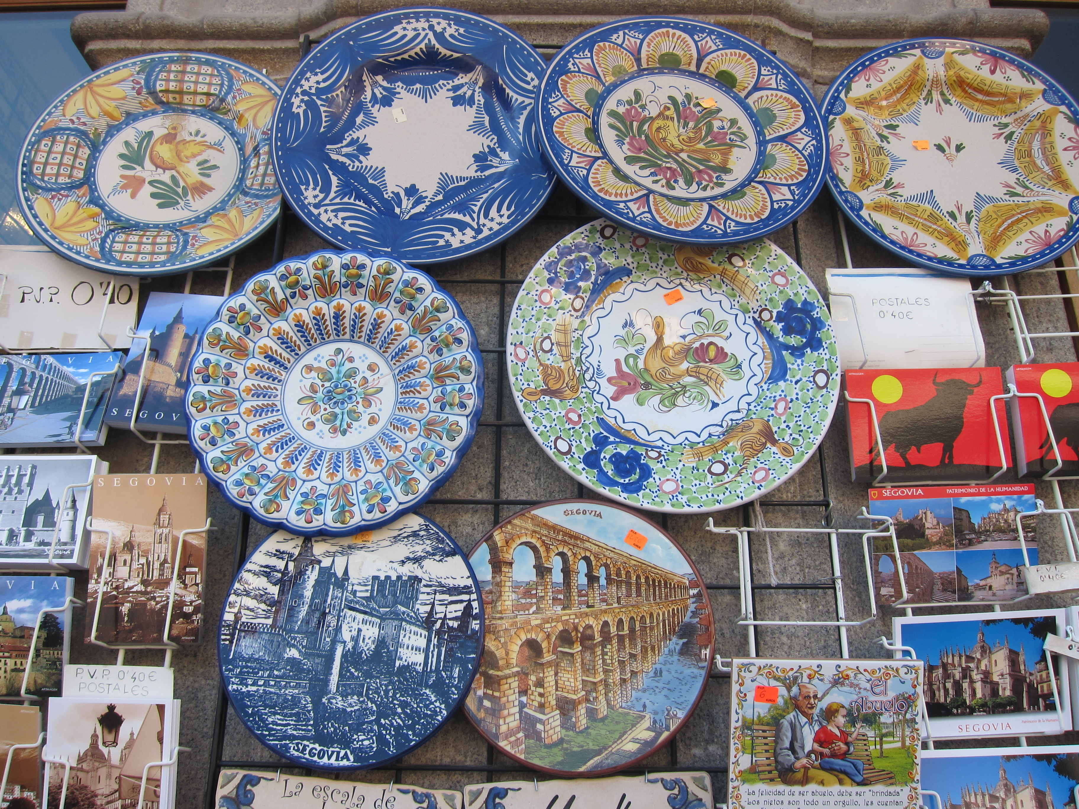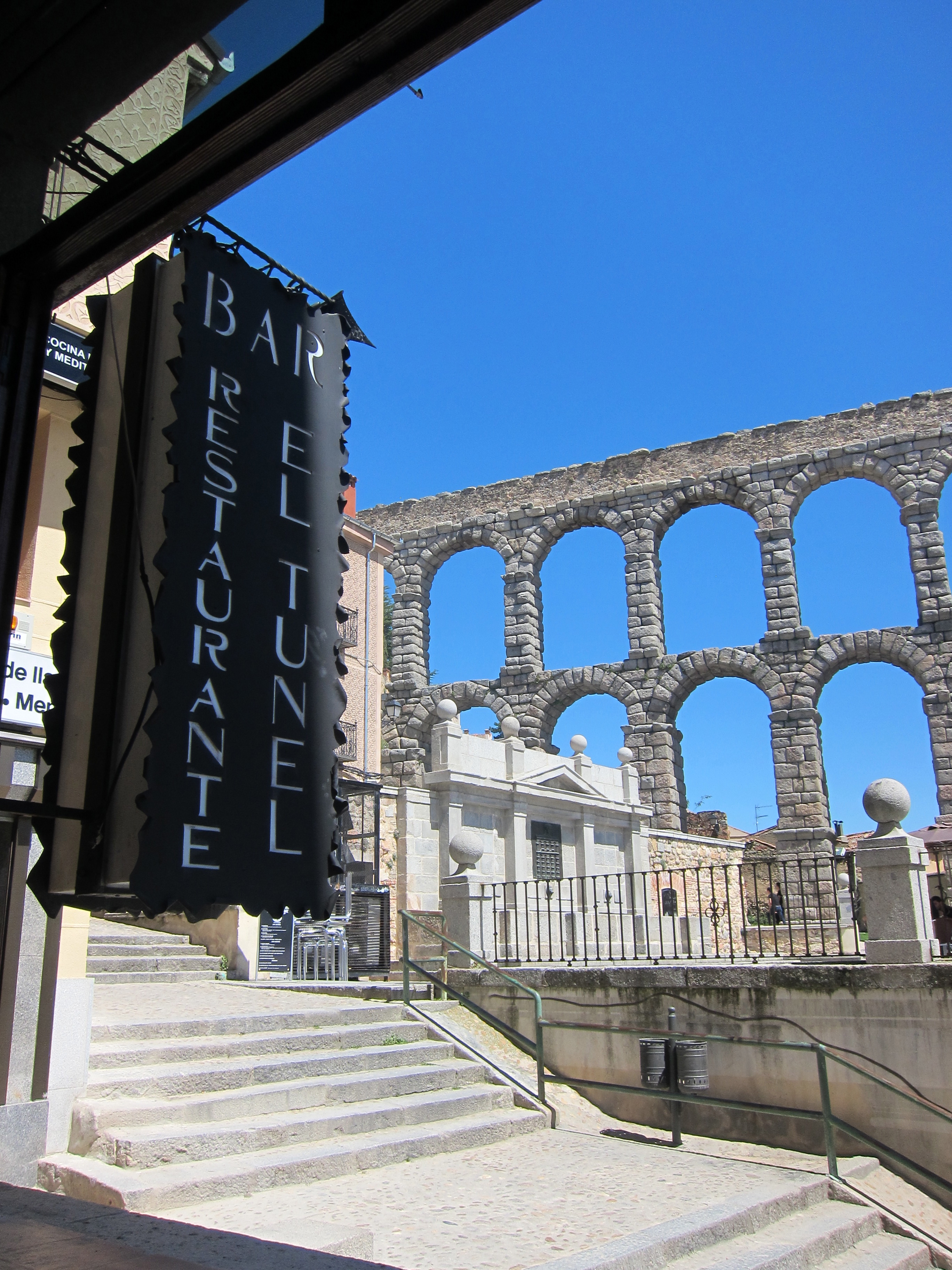Spent a glorious, sunny, blue sky day in San Sebastian walking the promenade to take the Funicular up the mountain. Spectacular view! More pintos before a city bus and 5 hour train trip to Segovia in central Spain. The topography was quite amazing as we left the coastal mountains and coniferous vegetation to pass through wide valleys and rolling hills. The country is drier and every inch used for cereal crops, mainly wheat as far as I can tell. The Spanish infrastructure is excellent..trains, great looking roads, power lines, loads of wind turbines, solar farms and industrial estates. It doesn’t appear that the economy is hurting in this regard!. However, the people in the towns, even in rural areas, live in apartment blocks which don’t look that fab. Its all so”spanish” though. Villages with stone churches with bells atop…just like in the old western movies! We arrived at about 10pm in the dark and bussed to our ‘Hostal’ in the older section of the city. Quick spanish hamburgers and the local soft drink before collapsing into bed.