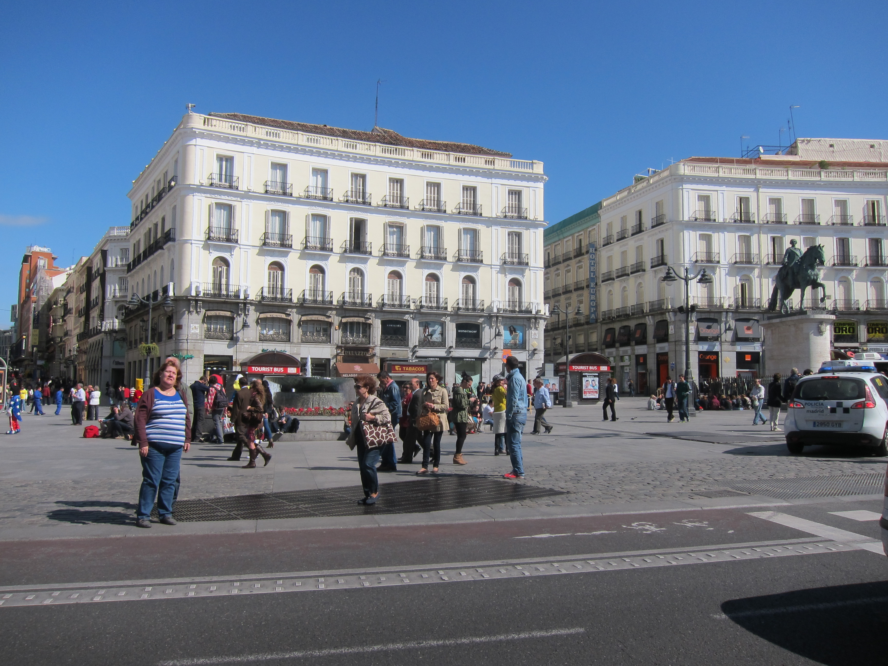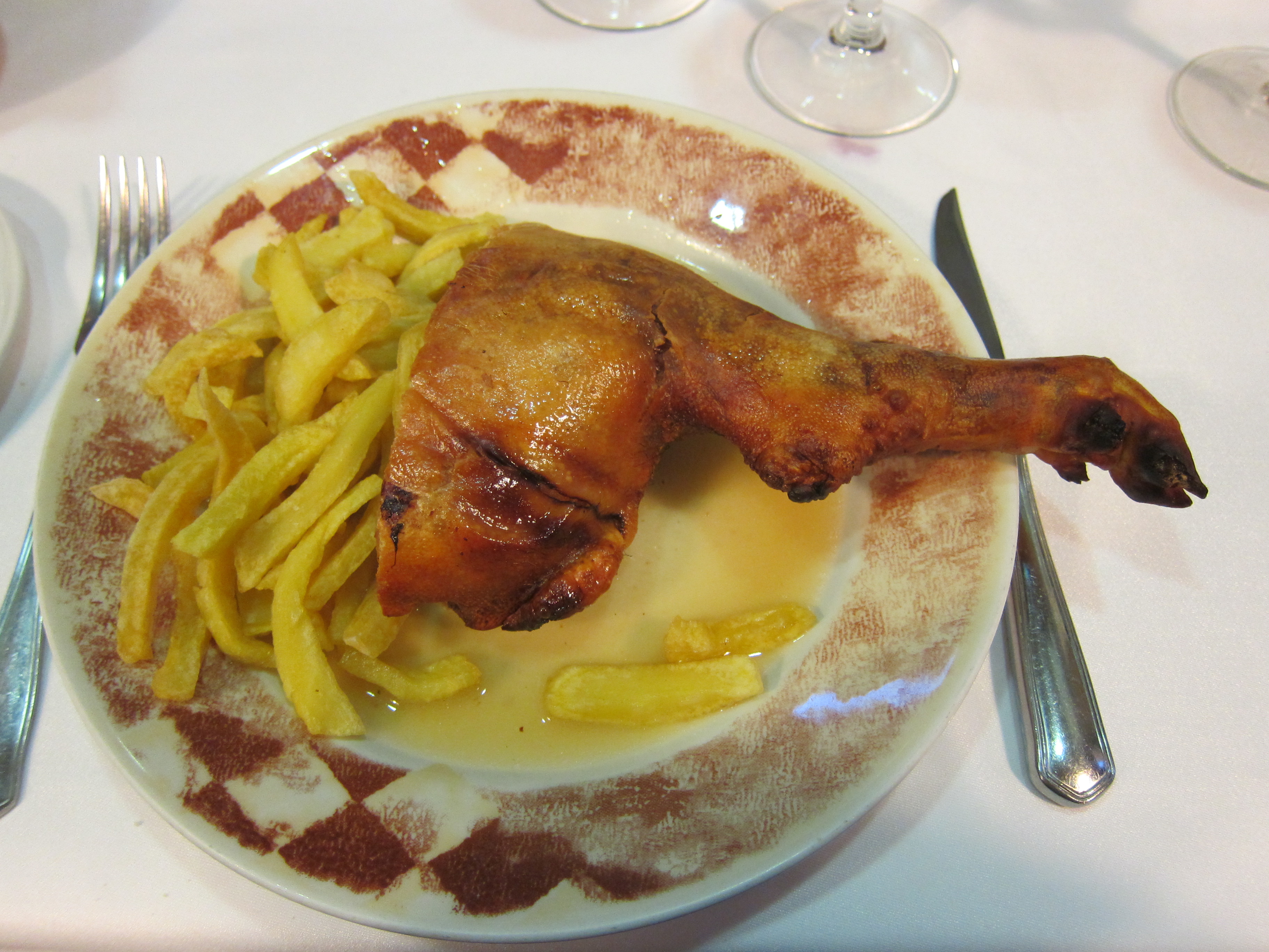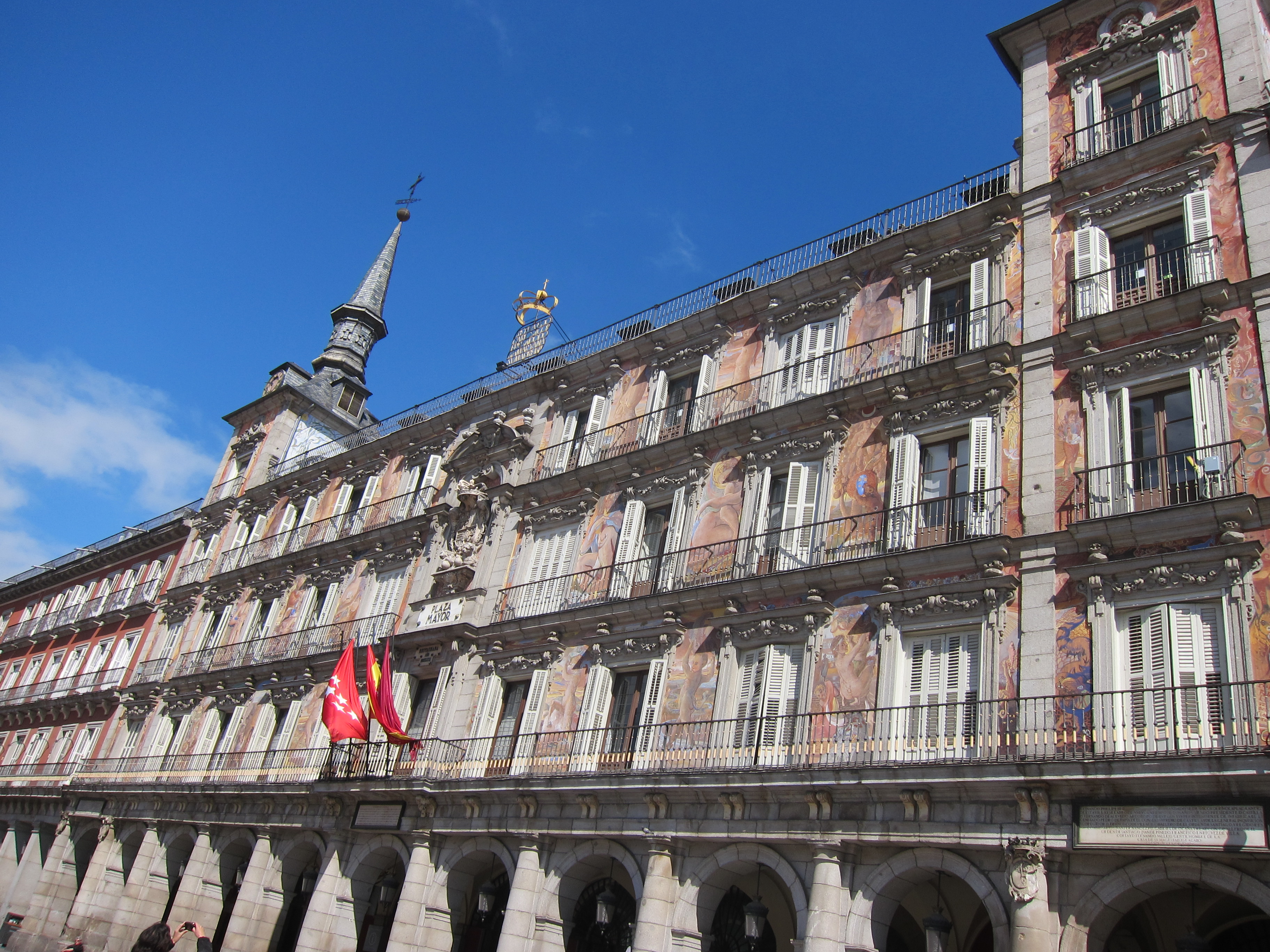 After our dinner of roast suckling pig we left early the next morning by bus and train to Madrid, the Spanish capital. Using the metro we checked into our hotel in a suburb of Madrid called Legazpi. I’am totally sick of the backpack…so may have to explore another option…hmmm, you certainly learn a lot from travelling!!! We had our “orientation” and walked the main part of the city, Sol, and Mayoral square. We lunched at a typical tapas style bar and then explored the shopping area. Hopefully baggage issue finally sorted!?! Rather proudly caught the metro back by myself and did washing at the local laundromat…found some fruit to eat and getting ready for Flamenco club performance tonight and dinner at Spains oldest restaurant at 11pm. I will be asleep. Madrid is not exceptionally appealing to me so far. Large city, grimy and lacking trees and green. Organised “cartels” of beggars in the central area and constant warnings of pickpockets. Jaime was certain 2 guys were going to unzip my backpack on the train and grabbed my back! We were follwed by another shady character and relentlessly harrassed by a young beggar girl when at the ATM. There is a noticeable police presence though! Will explore more tomorrow. This is the last night of the Intrepid Paris to Madrid section of the tour and everyone is going separate ways. I stay with Jaime the leader and continue through Spain, into Portugal, then Morrocco with a new group of 11 other travellers. Should be interesting!