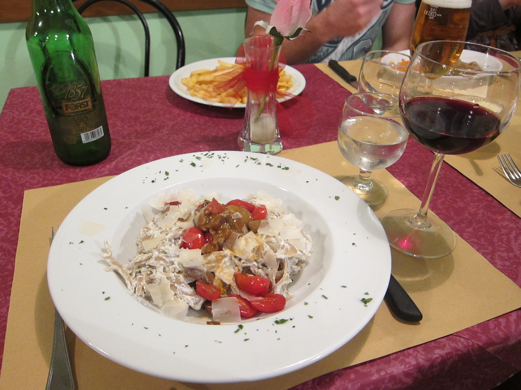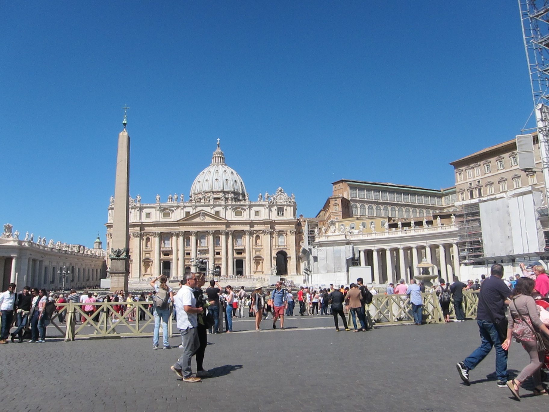 Met “Team Intrepid 3” at our Rome hotel and had a nice dinner of Spaghetti Carbonara and vino rosso…my room is like a corridor!!! Walked to the Spanish steps, Trevi fountain, The Pantheon and Palazza Venezia where Callum and I got a bus to Vatican City. We marvelled at St Peters square and the Basilica and squeezed in a quick tour of the Vatican museum and Sistine Chapel with its famous paintings by Michelangelo. Just so much to take in…incredible…Pasta again for lunch at La Famiglia before heading to Florence by train.