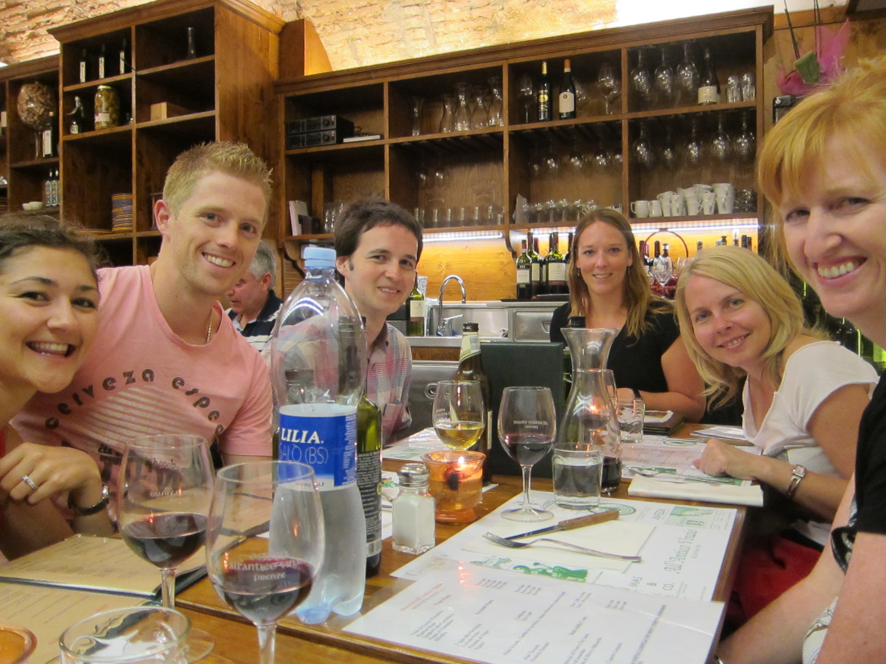 Took a train from Rome to Florence through beautiful , green countryside with amazing hilltop villages, for an hour and a half. Had an ‘orientation’ and a great dinner at an Osteria with lots of italian food and red wine. Our group Leader Catharina is at the end of the table, then paula, Fiona, Natalie, Cameron and Calum.