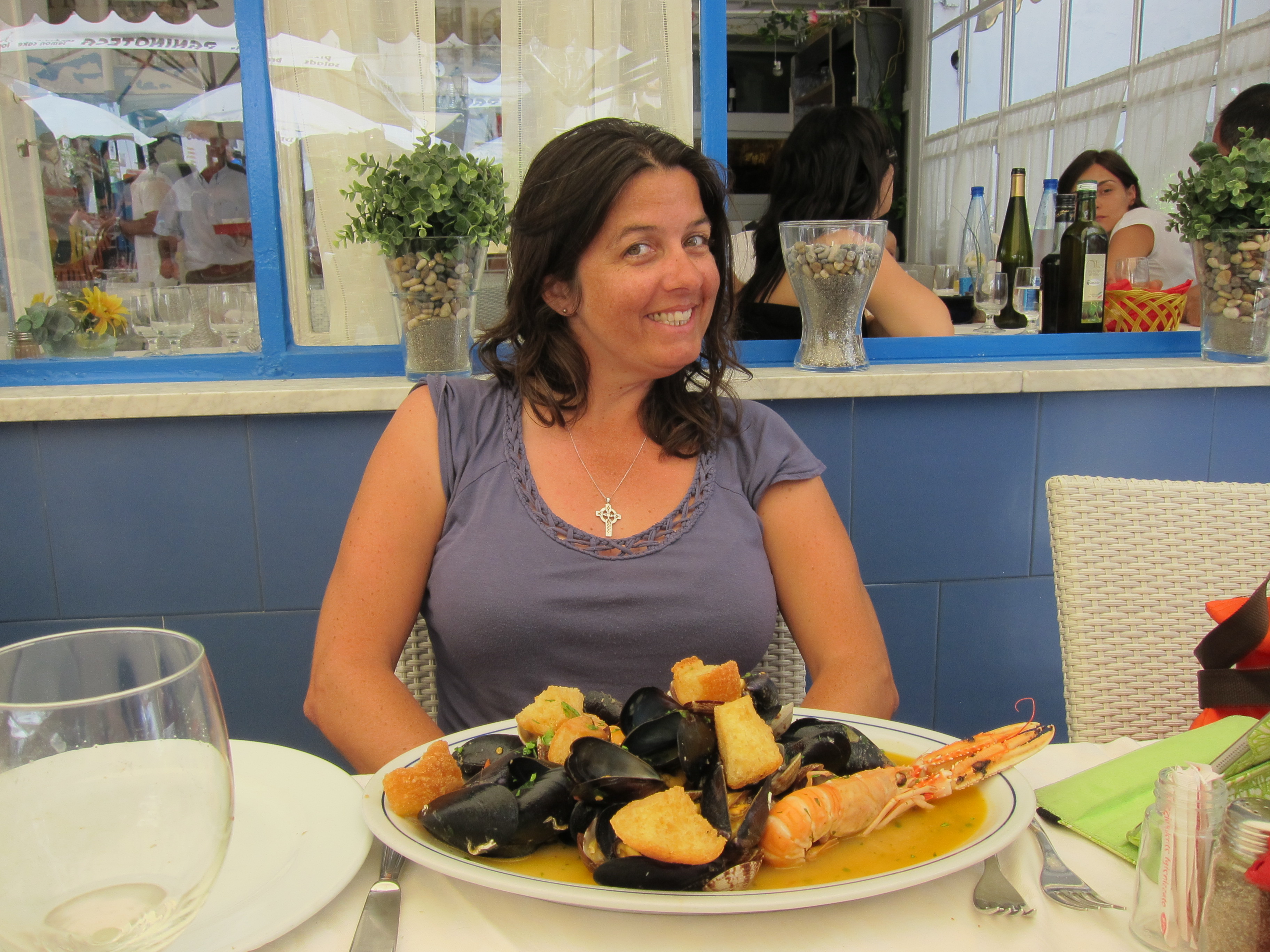 Caught the ferry from Positano to Amalfi and met Kisane ( my friend from Intrepid Team 1, Paris to Madrid ). Had a fabulous seafood lunch at the friendliest Italian restaurant and then some shopping and hired beach chairs on the ‘public’ beach for a beautiful swim and sun bake!