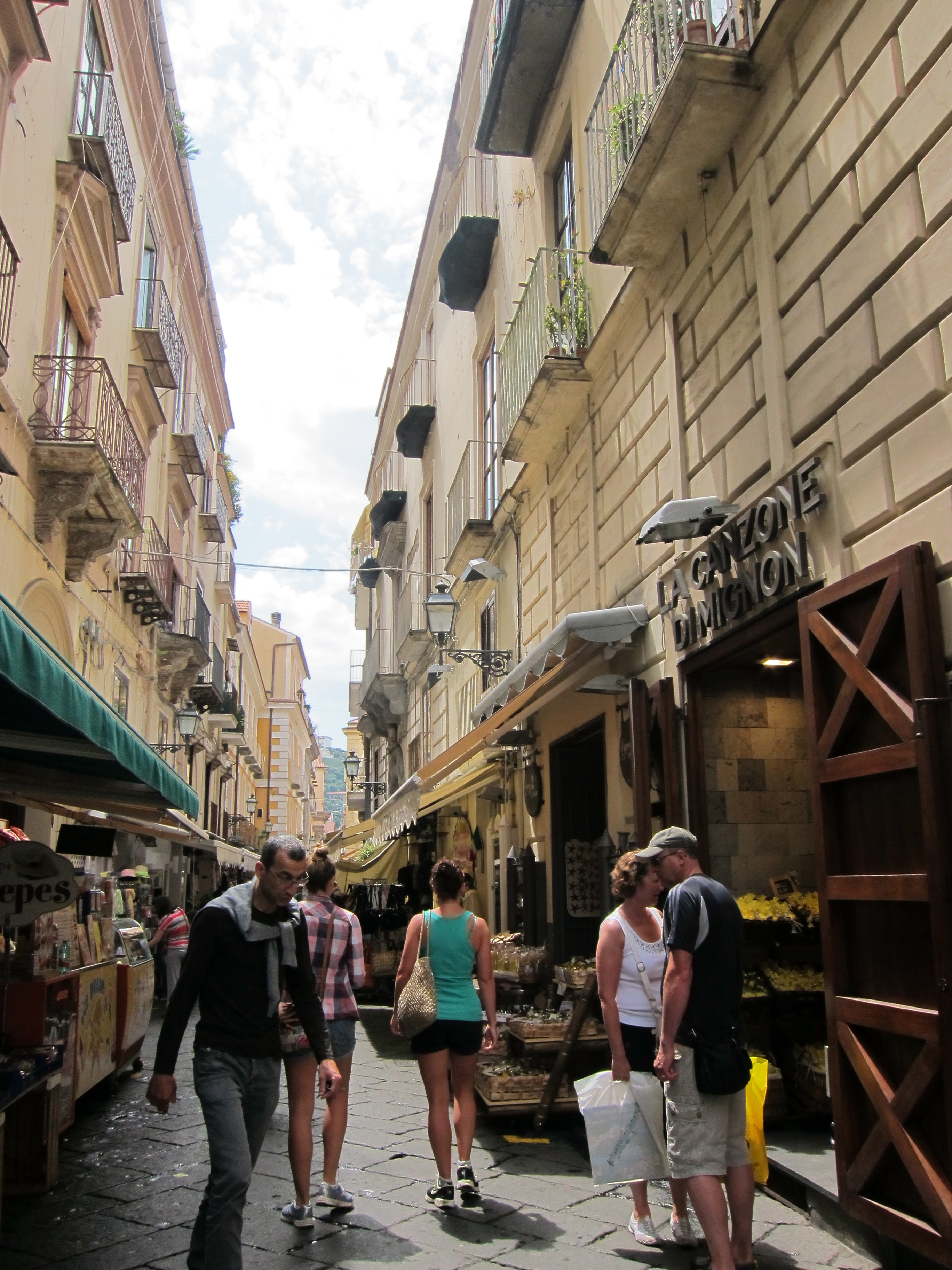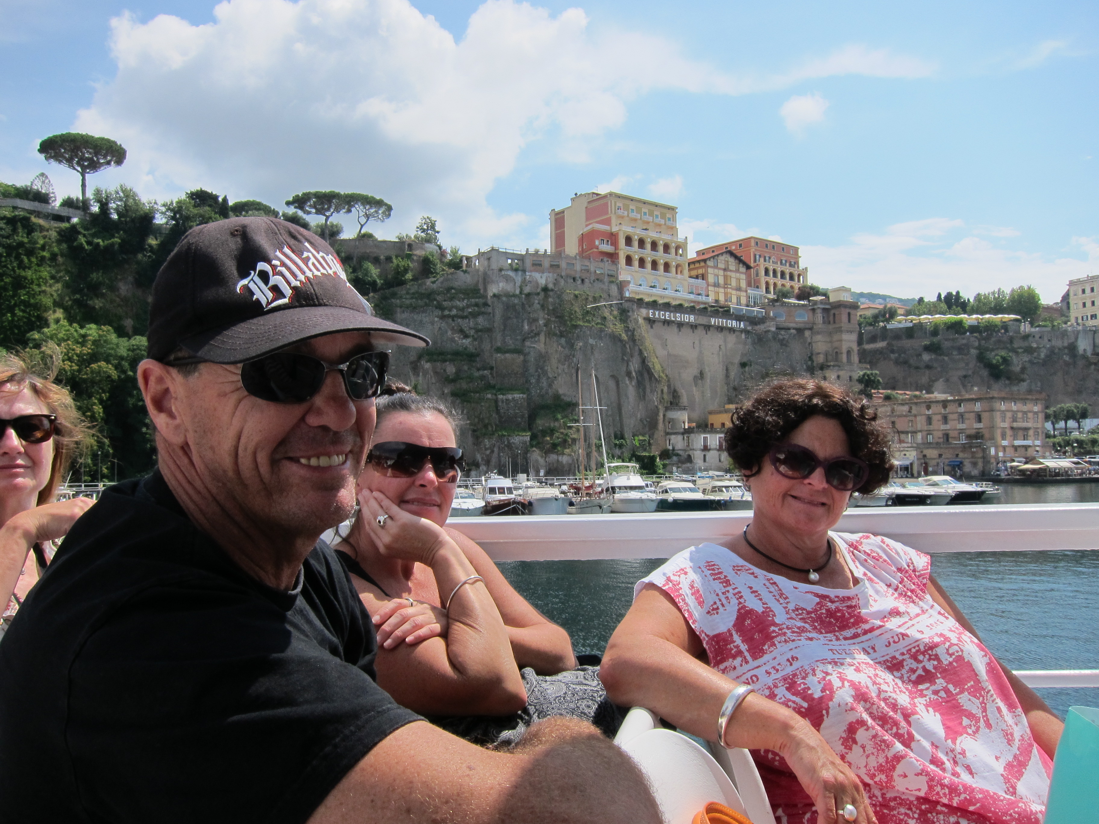 Dinner at our local Trattoria Bruno’s…best fish in limone…Woke up to an overcast and then rainy day (what happened to our beautiful Mediterranean weather?) so took a ferry via Capri to Sorrento where the sun came out. Pizza lunch and very short exploration of the town centre before ferry home….then discovered we really should have gone by bus!