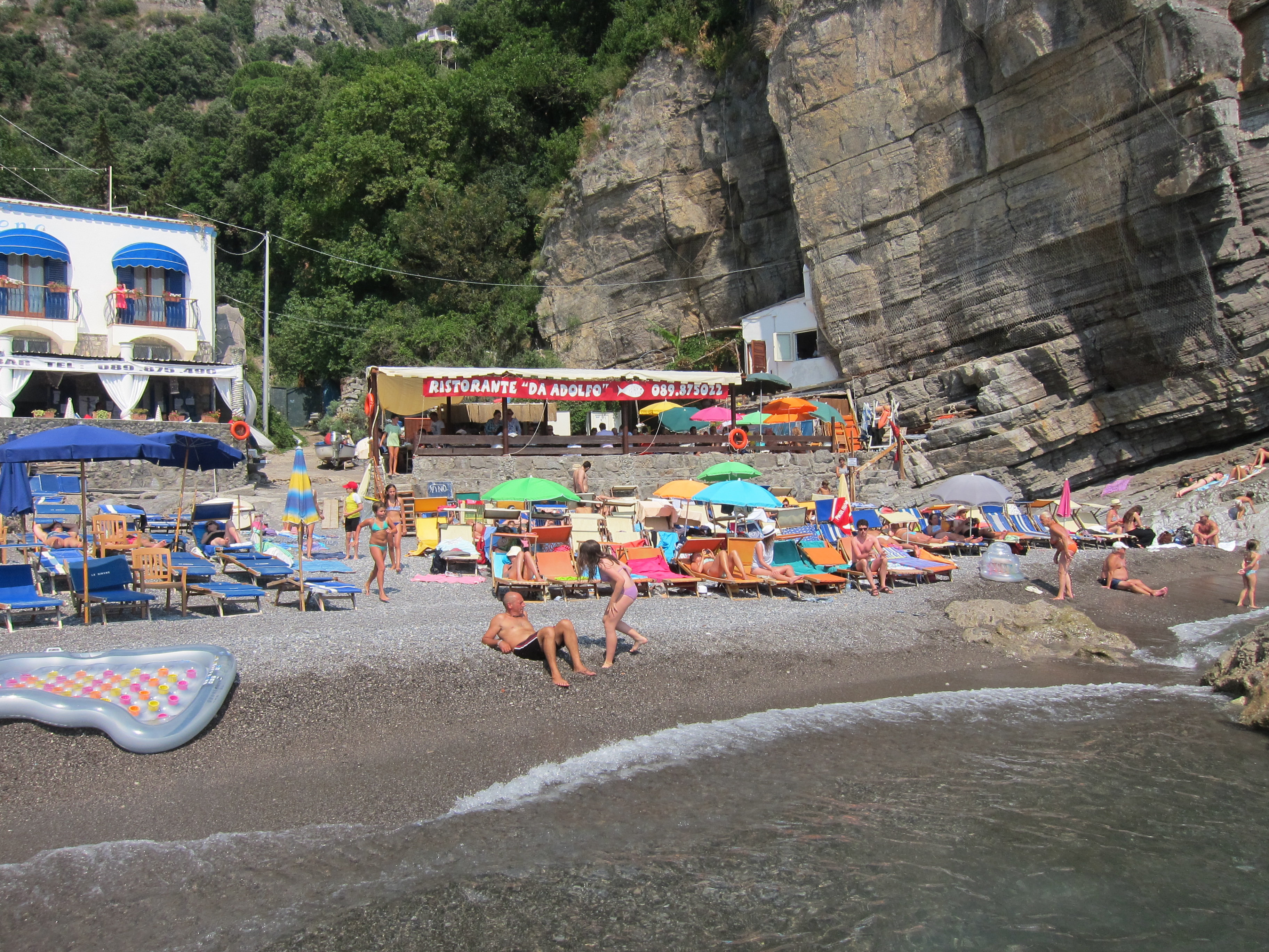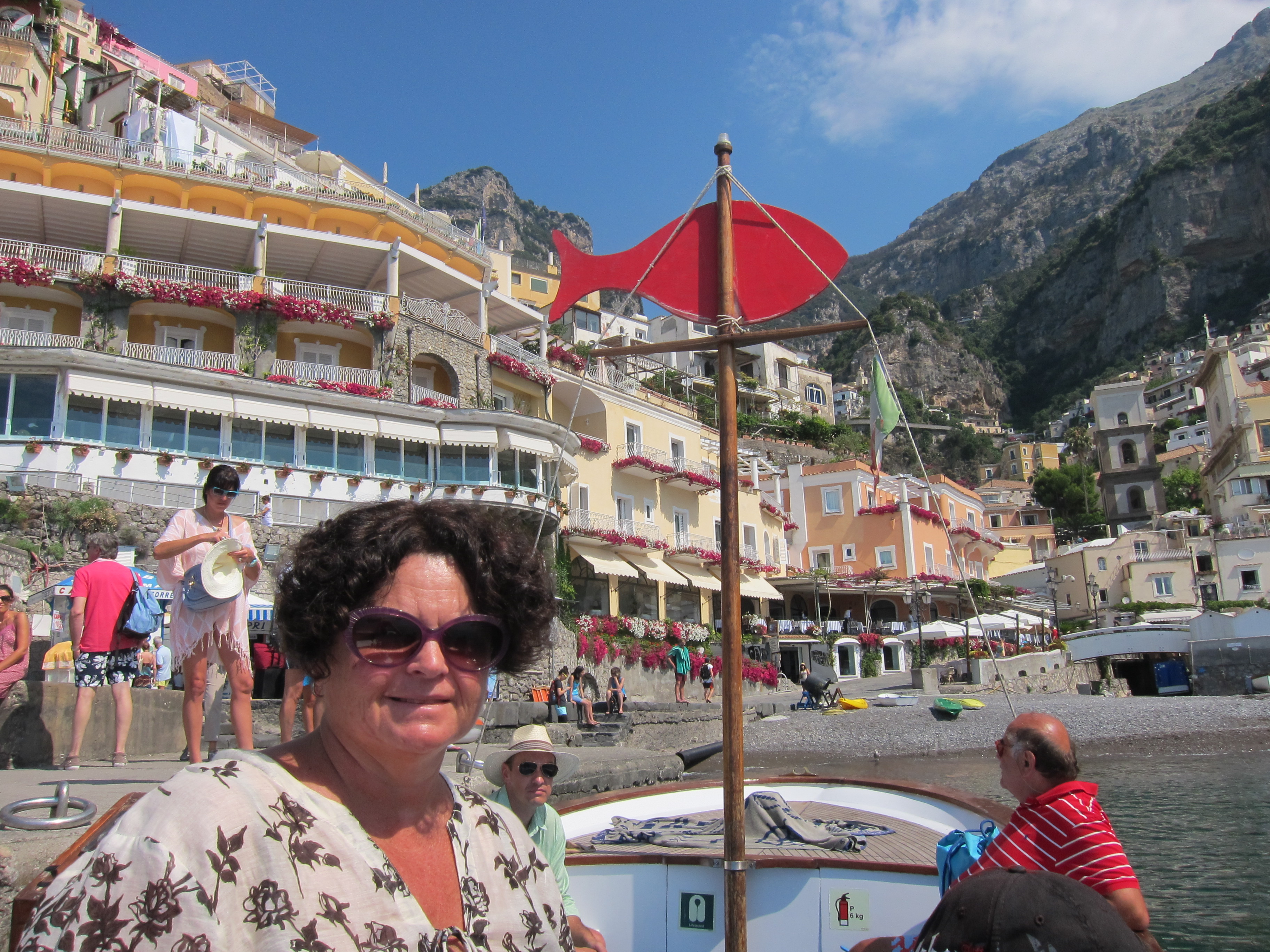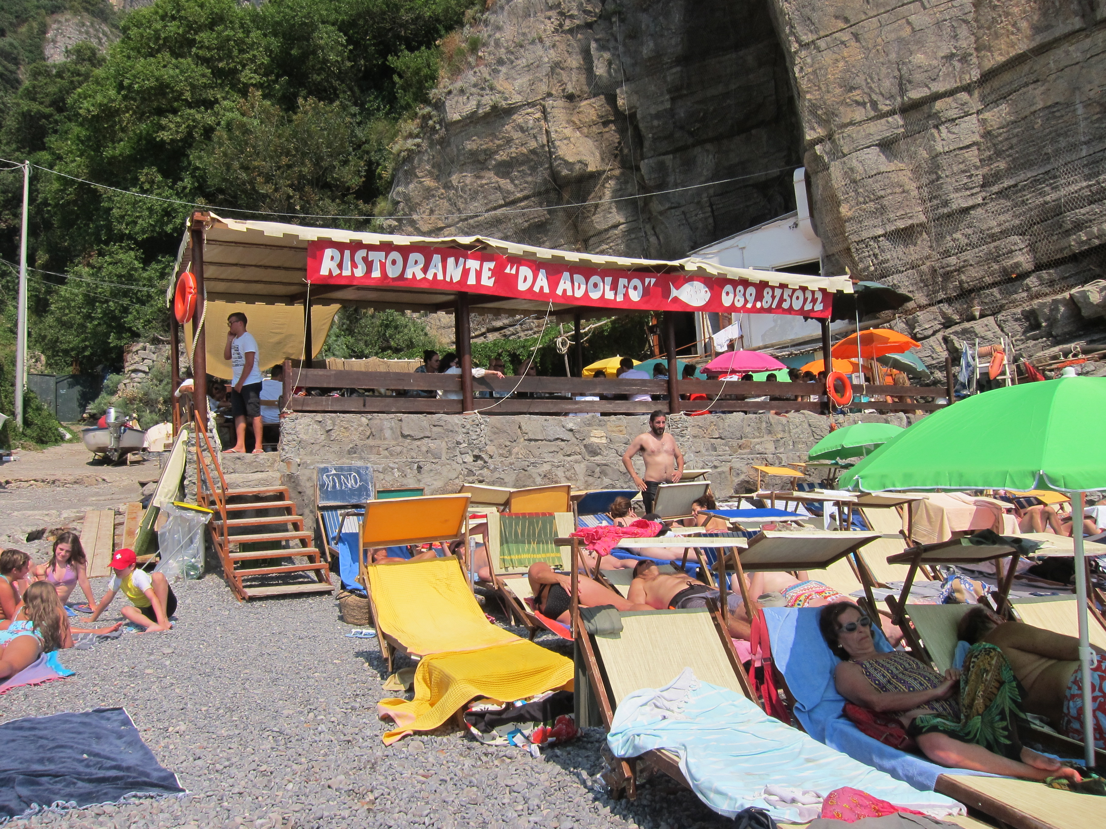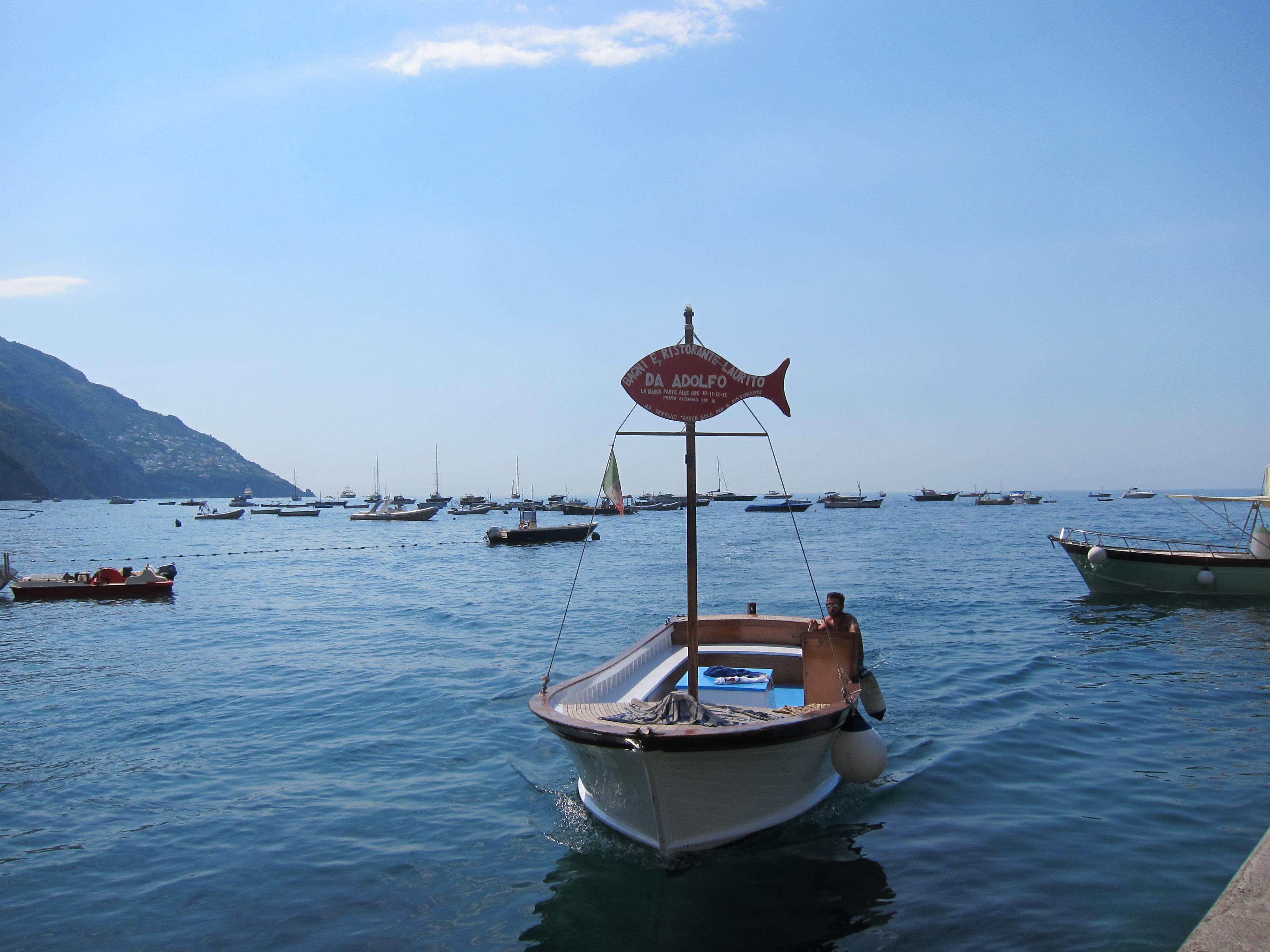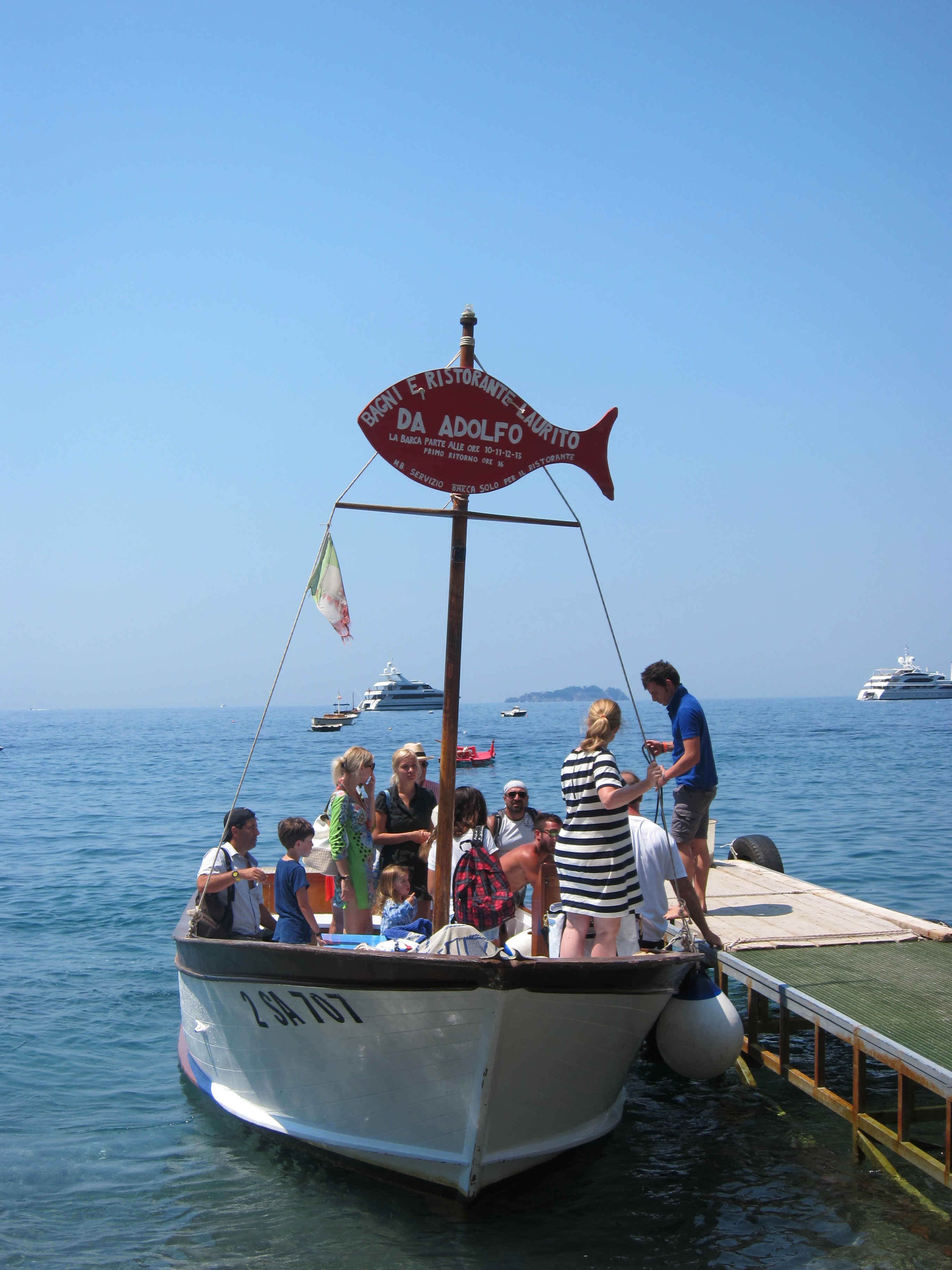 Caught the little boat with the big red fish down the Amalfi coast to Laurito beach and Adolfos Ristorante for the day. Lounged and swam and then had lunch in the Ristorante….just fantastic!