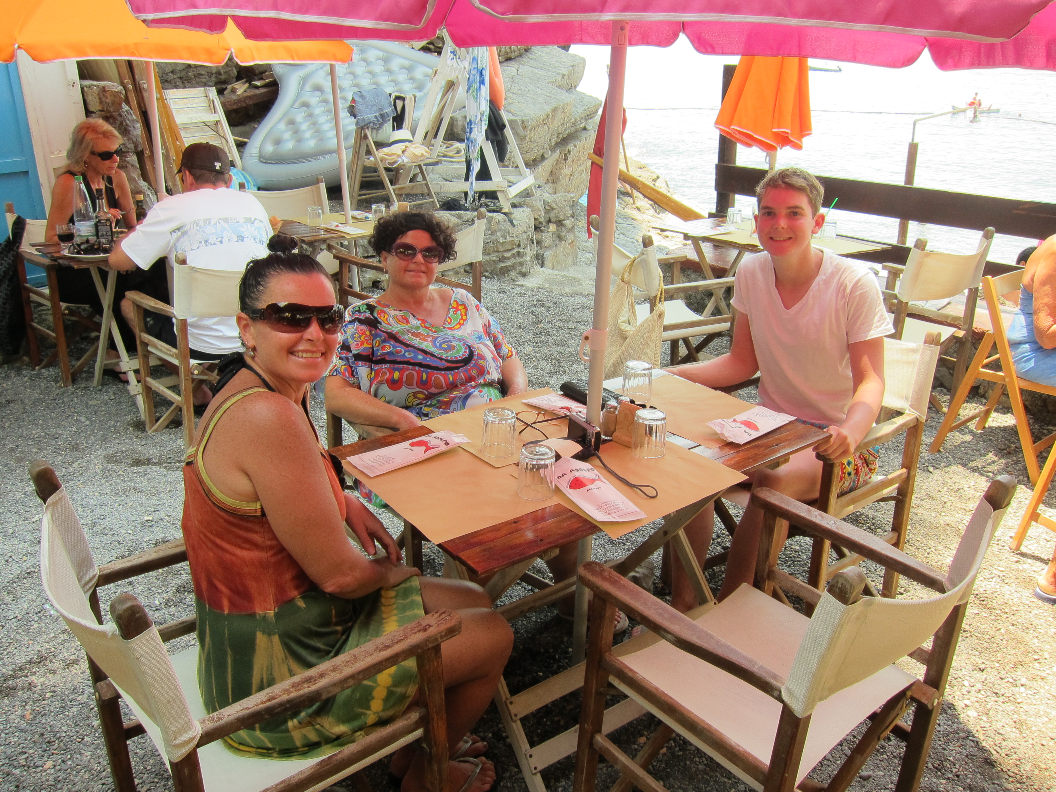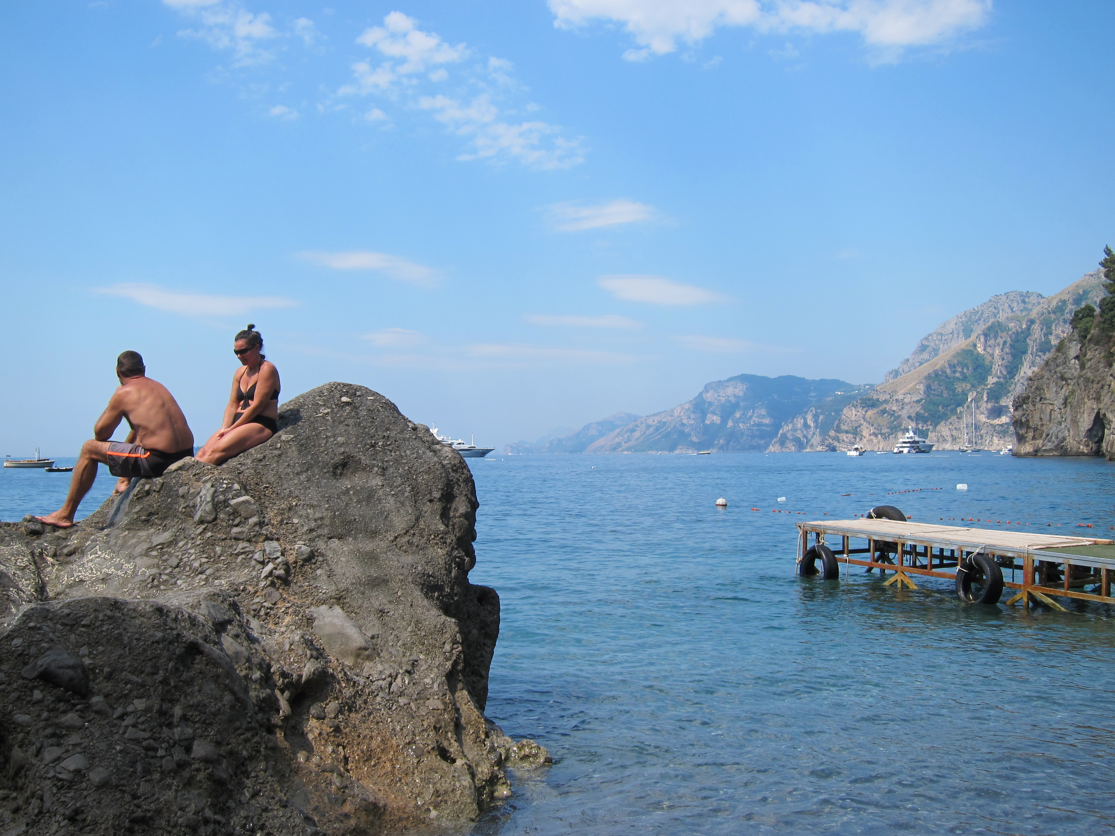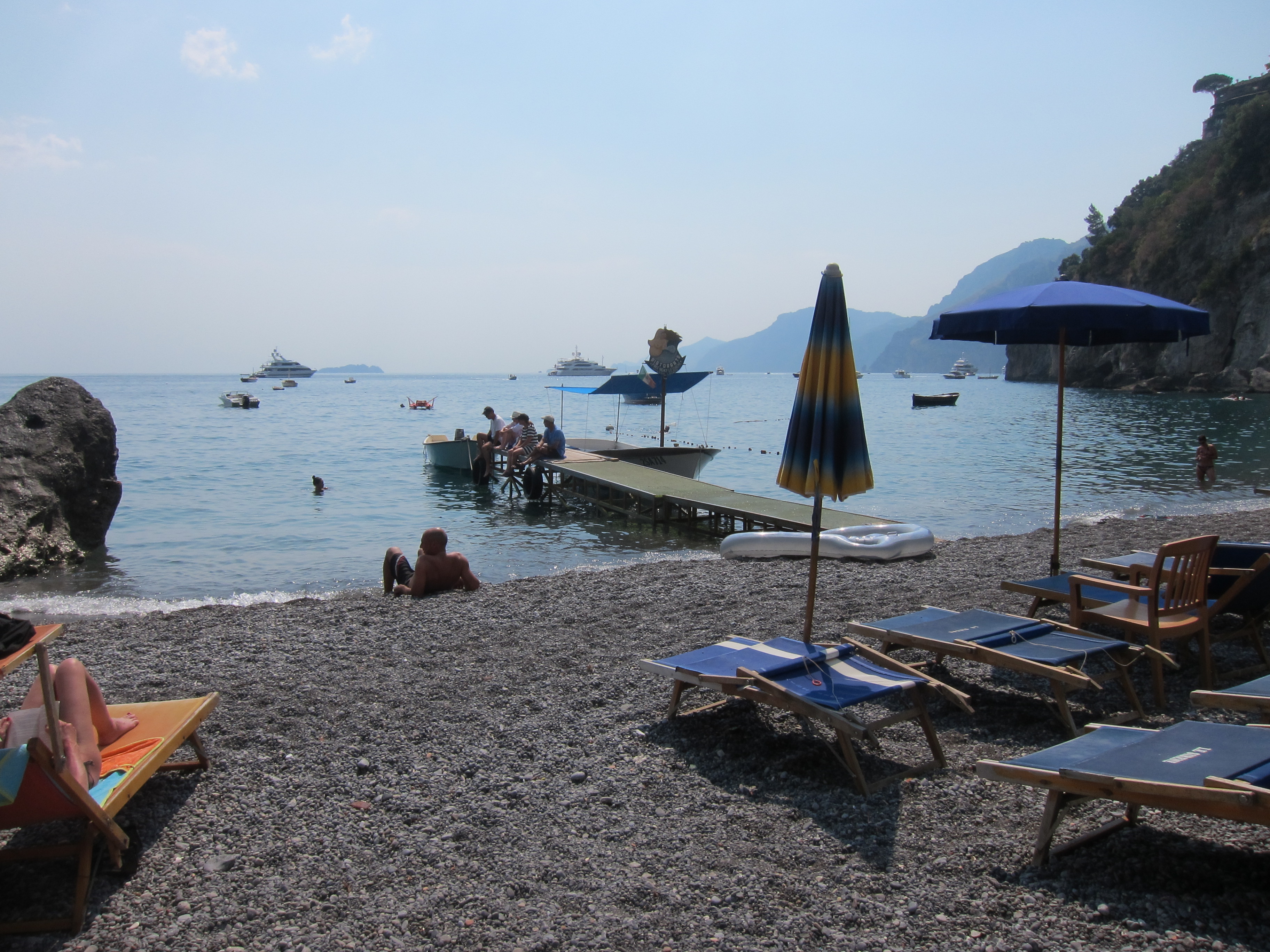 First swim in the waters of the Mediterranean at our ‘semi-private’ beach 200 steps down from our apartment at Spiaggia (beach) della Sponda. Pebbles, refreshing water and Floyd jumped off the cliff as the locals were doing.