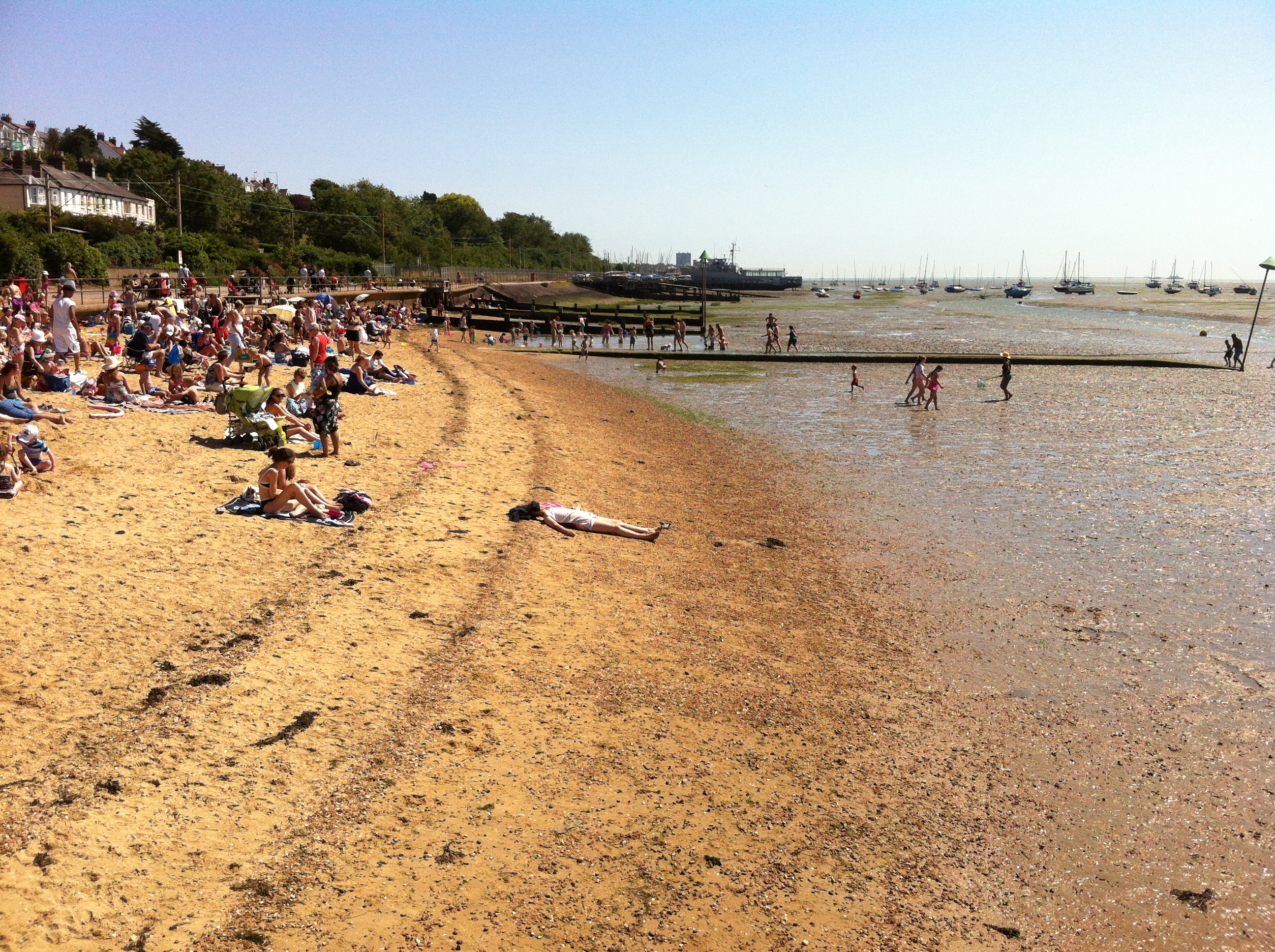 Over thirty degrees and humid…you have to love the Brits as they flock to the beach at Leigh on Sea…yes, that IS mud!!! The good old Thames estuary with its briny salty mud flat smell near the cockle sheds… And, celebrating the birth of William and Kates’ baby…