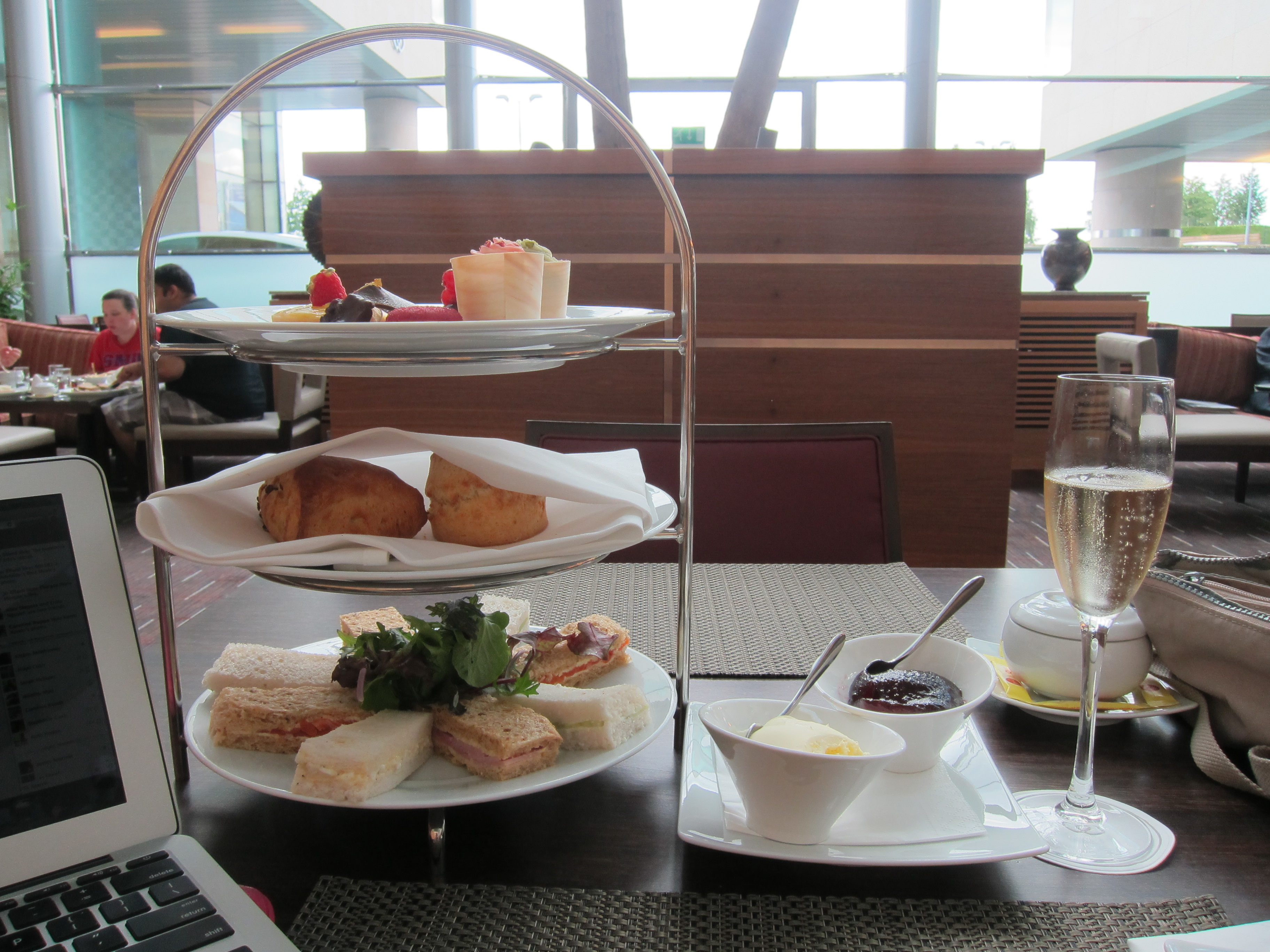Caught the C2C train to London Fenchurch Street then the underground circle line to Padddington where I boarded the Heathrow Express for Terminal 5…very slick train and service! I managed to get a great deal online at the Sofitel (5 minutes covered walk to check in tomorrow morning) and guess what ..Iam their ‘Guest of the Day’ with a room upgrade to King size, breakfast and access to drinks and canapés in the ‘special’ lounge…all very nice so I proceeded with the ‘all things very nice’ theme and had a Perrier-jouet Champagne Afternoon Tea. as you can see it covered lunch and dinner!ImageImageImage