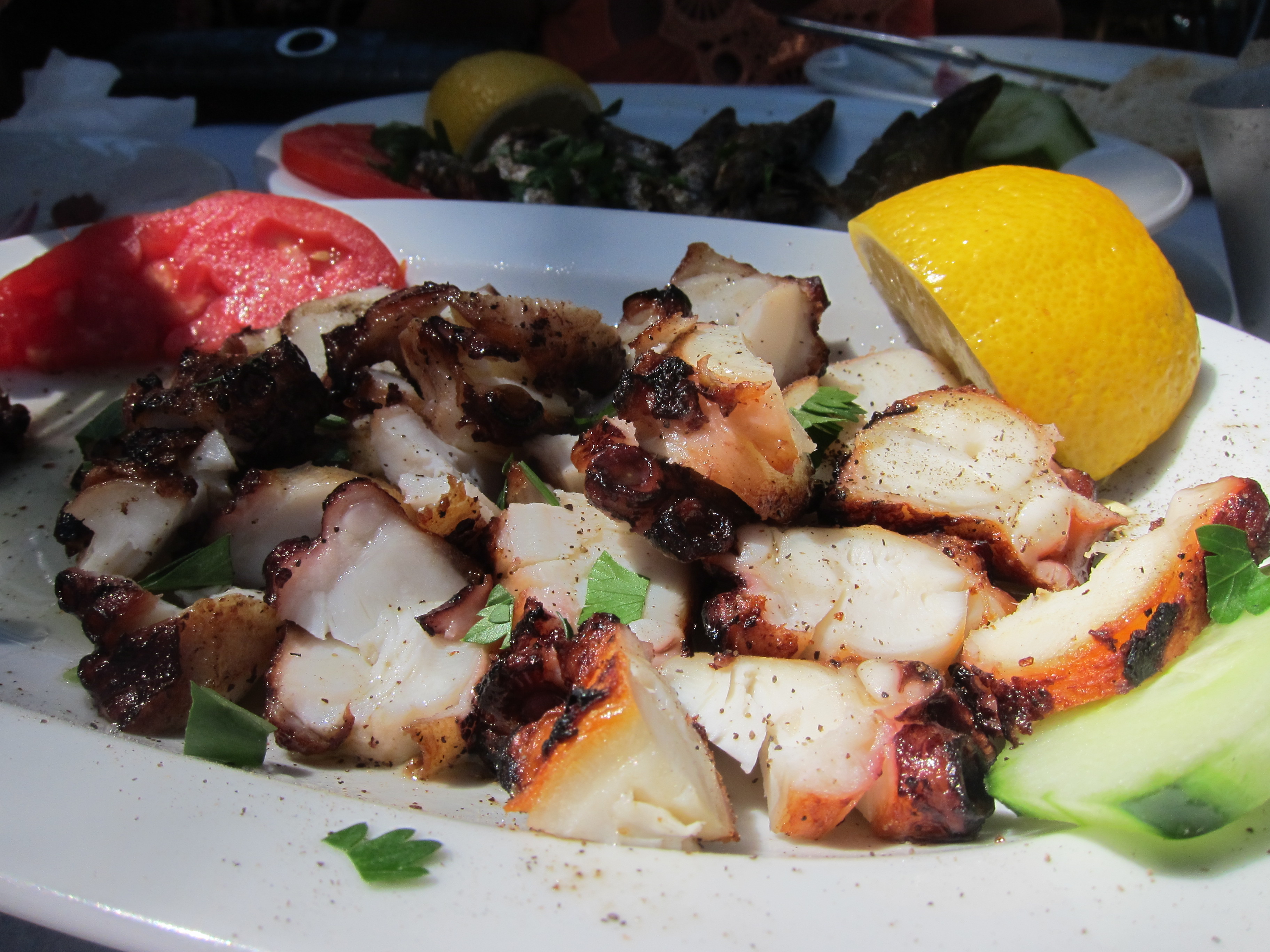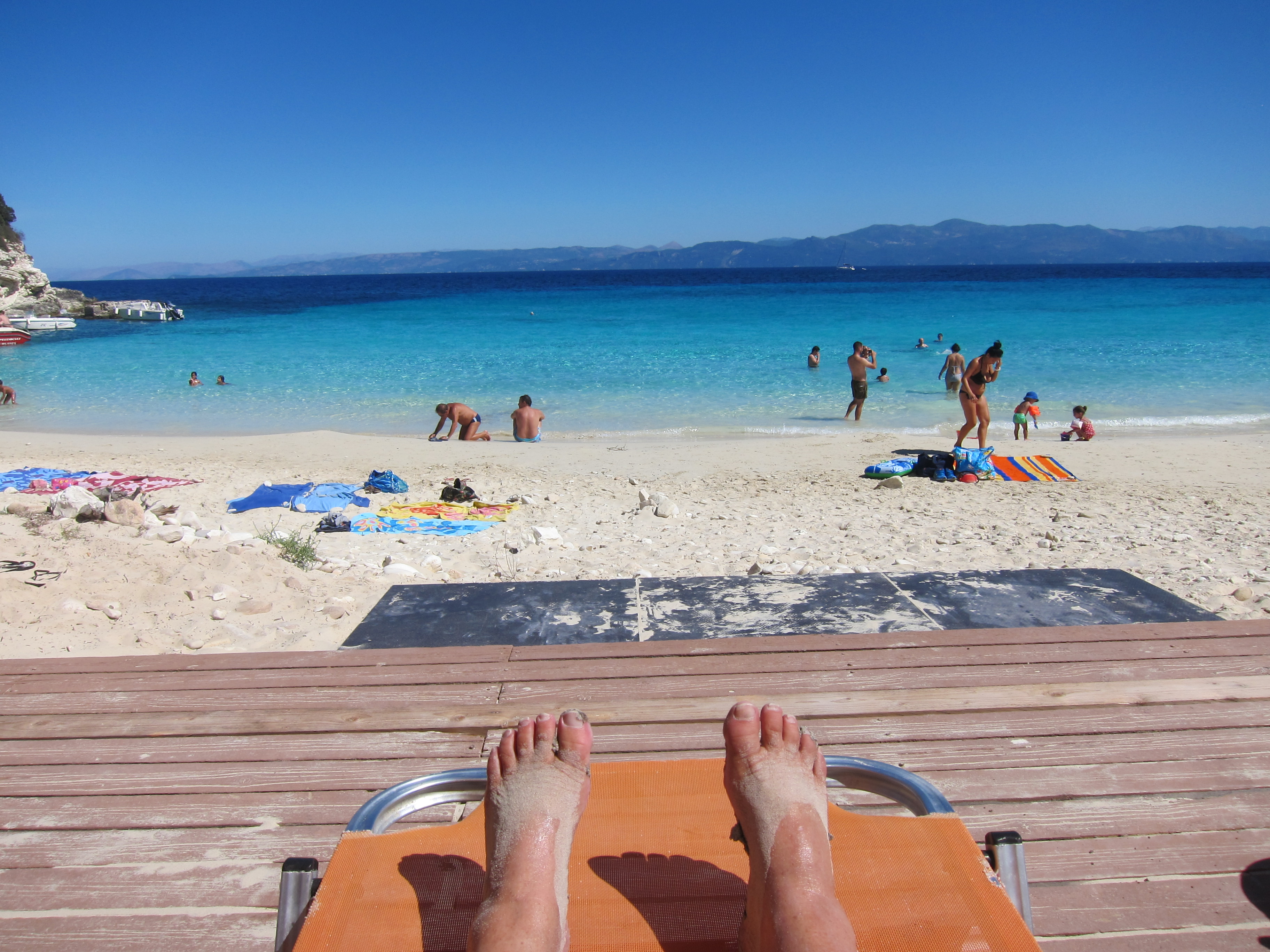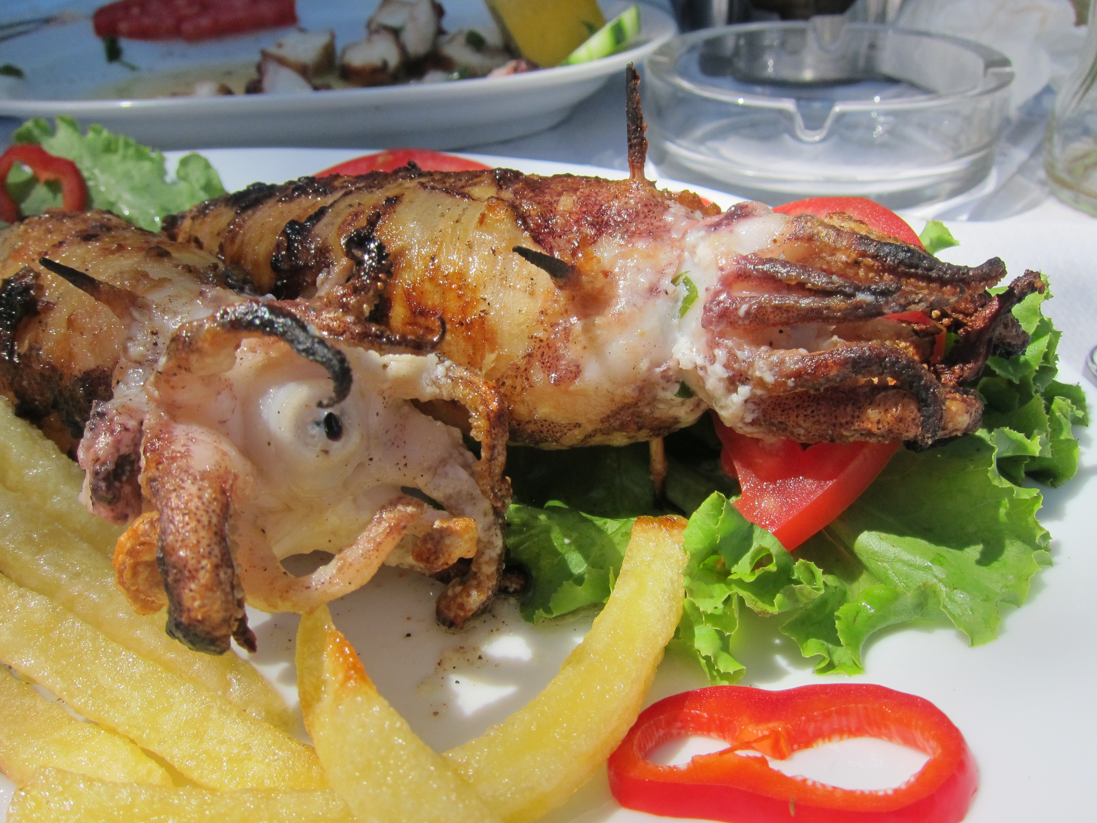 Took aboat to the small island of Antipaxos with its white sand beaches. Spent the day at Vrika Beach and lunched on seafood at Spiros Taverna on the beachfront with its drying octopus and chargrill at the front!