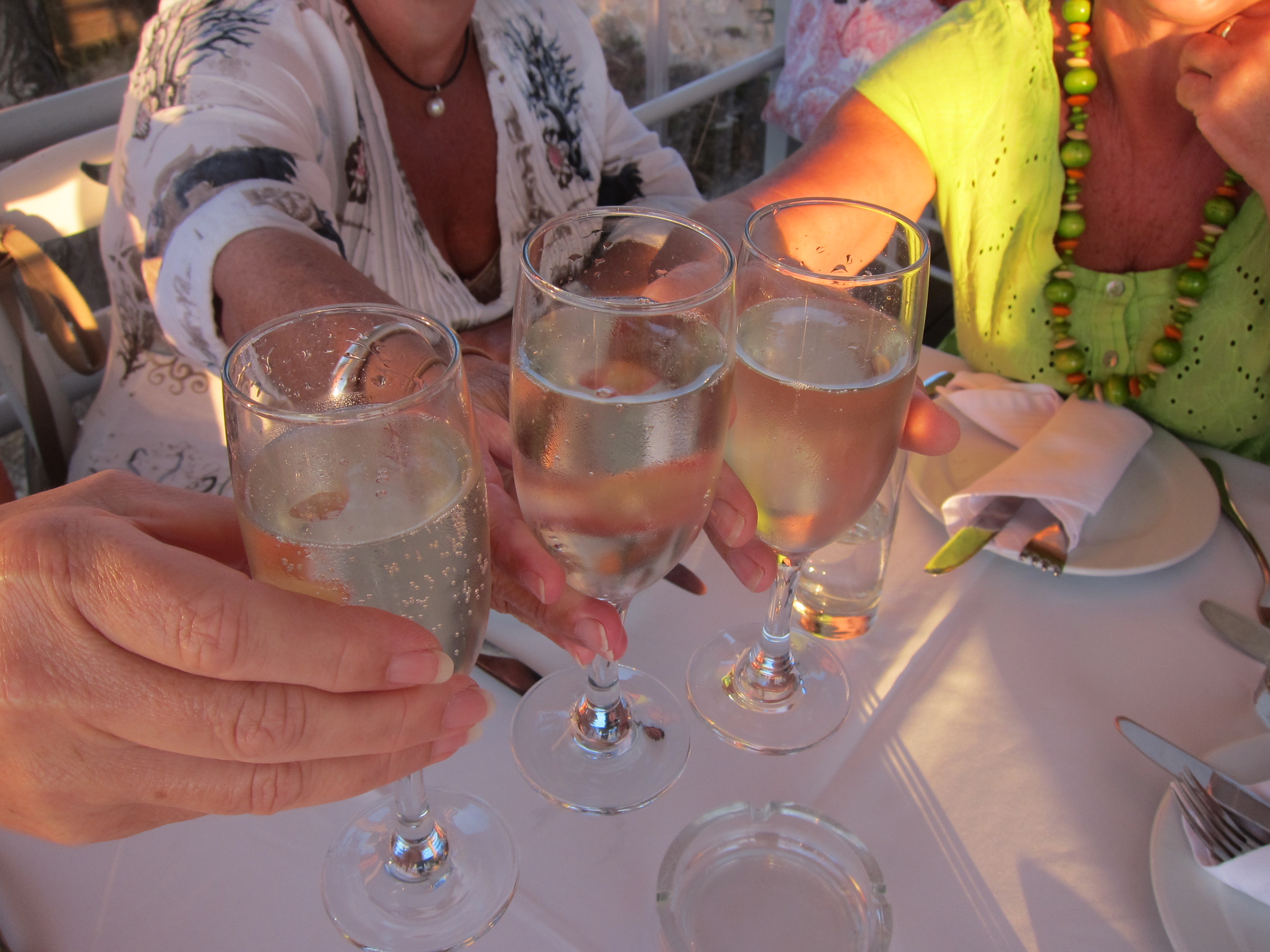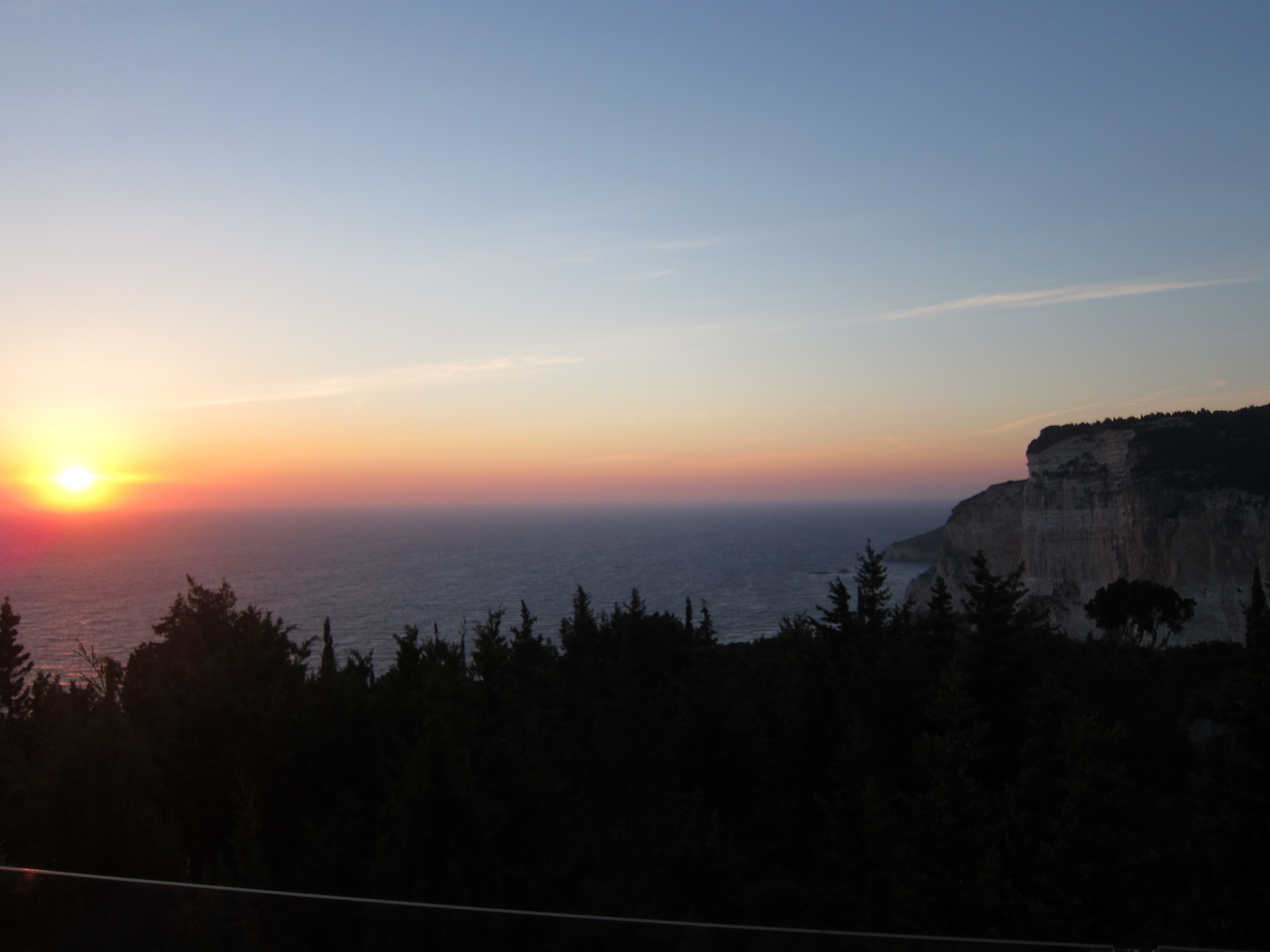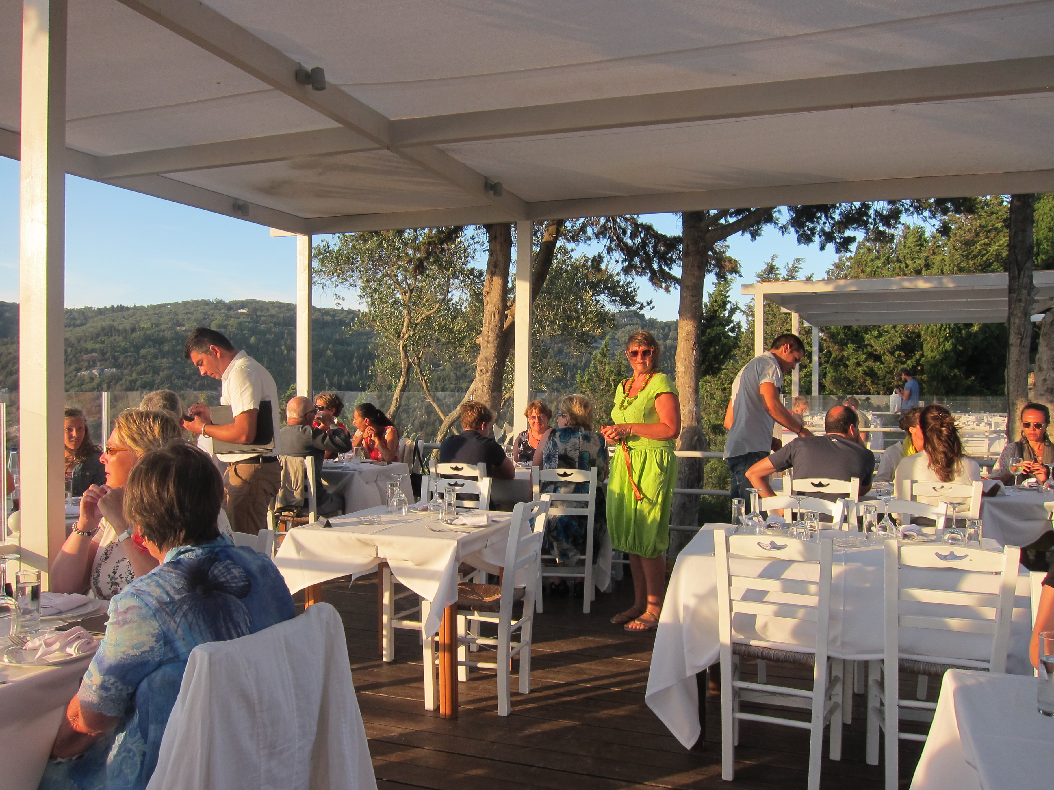 A gorgeous sunset (if a little windswept!) on the western side of the island at a thoroughly modern and very cool restaurant called Erimitis.