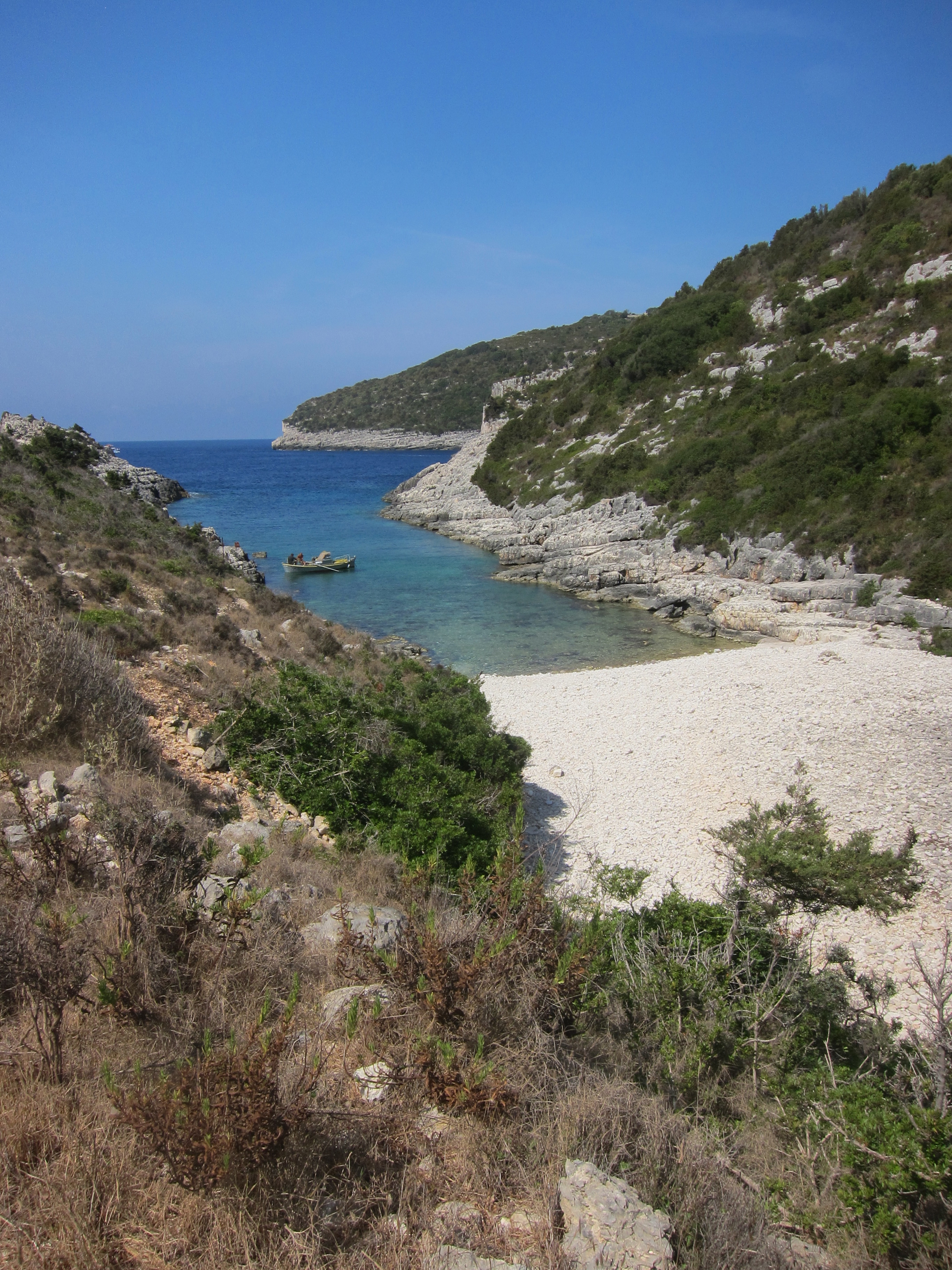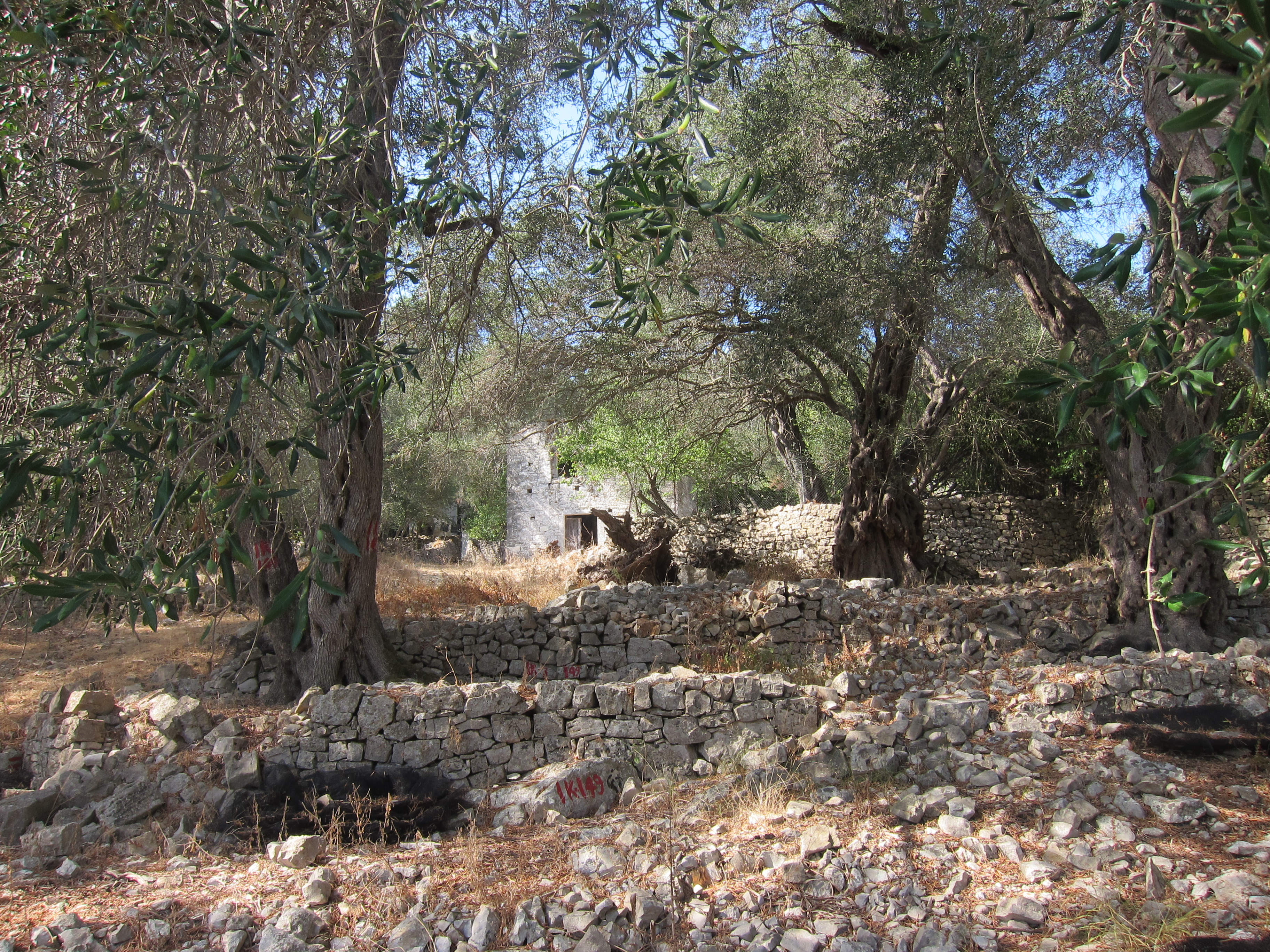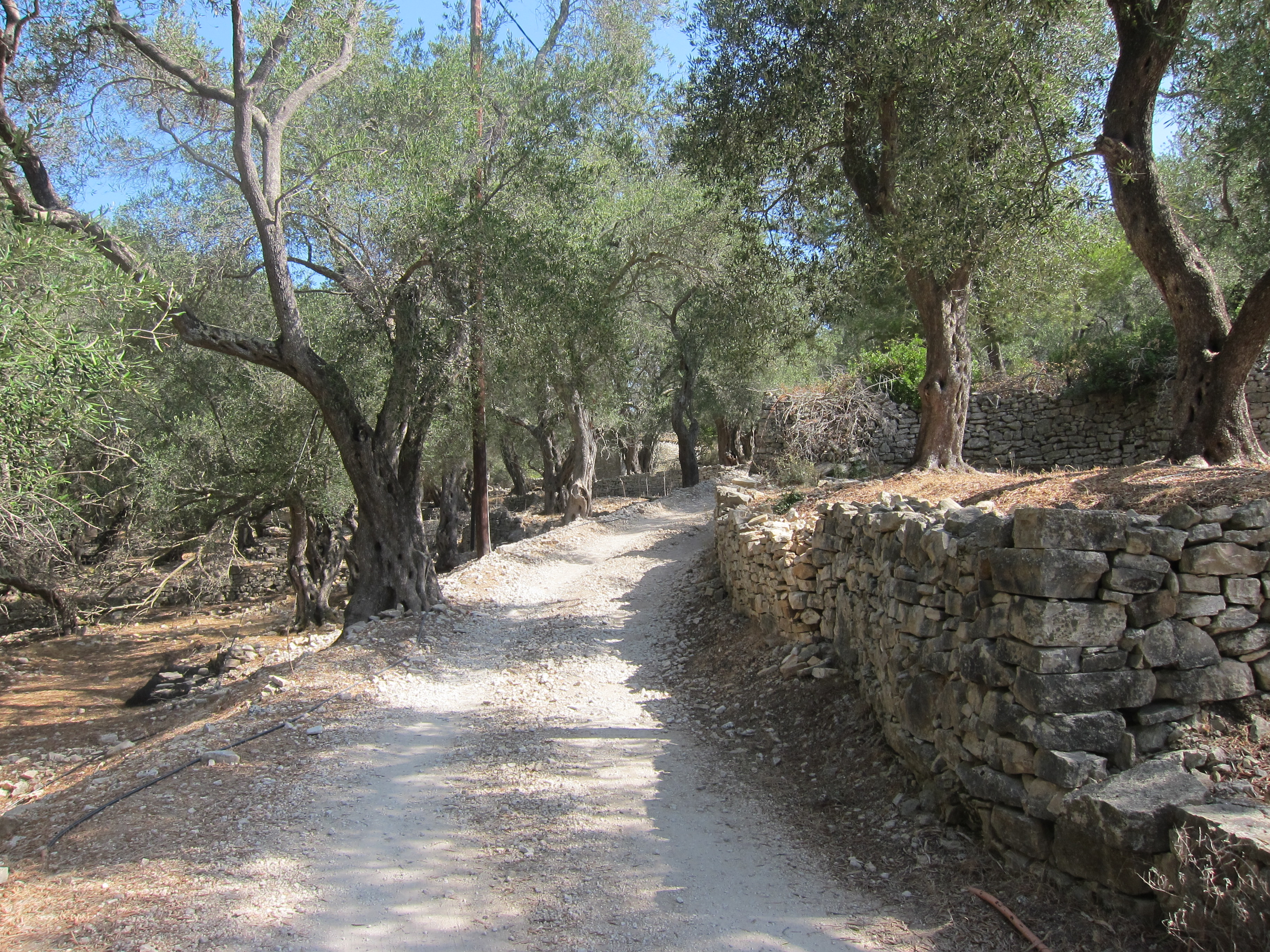 Stone terraces created by the Venetians for olive growing and some viticulture…ruins…ancient olive groves…a remote cove with a goat herder, two fisherman and me…rough roads and lane ways…Greek Orthodox churches and their bell towers…Lunch waterside at Lakka…Donkeys who loved a good pat…