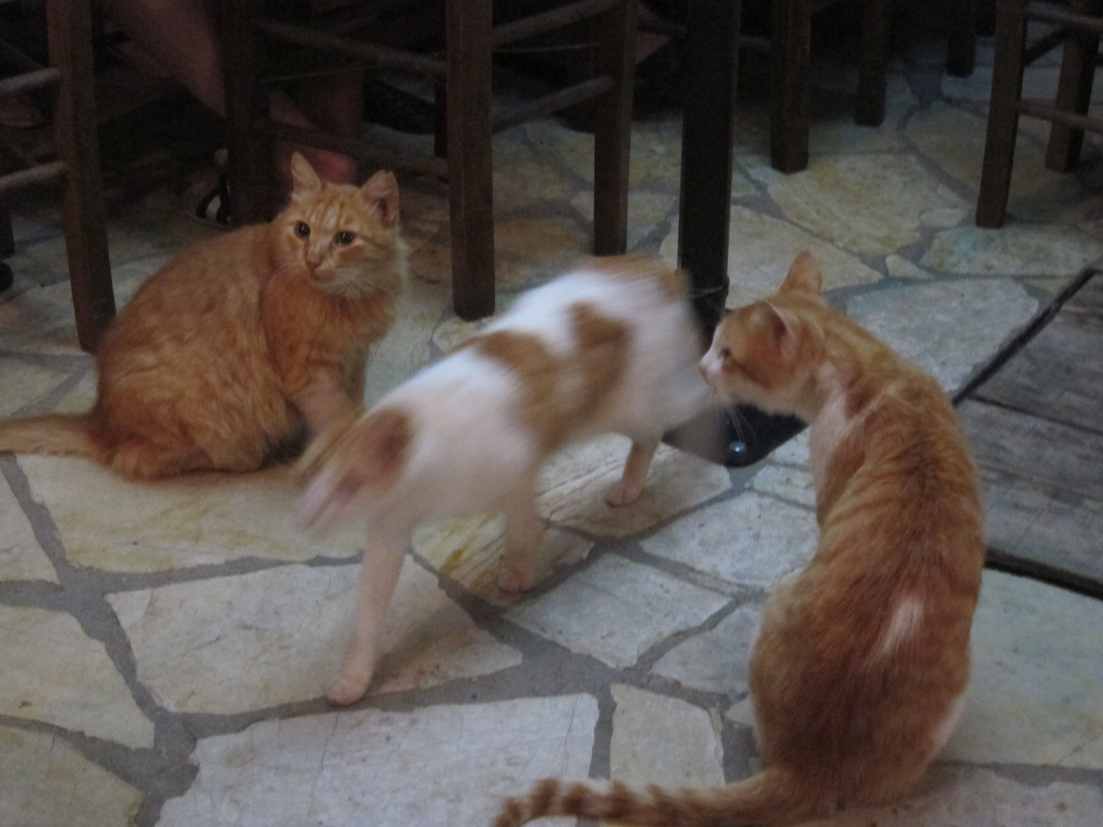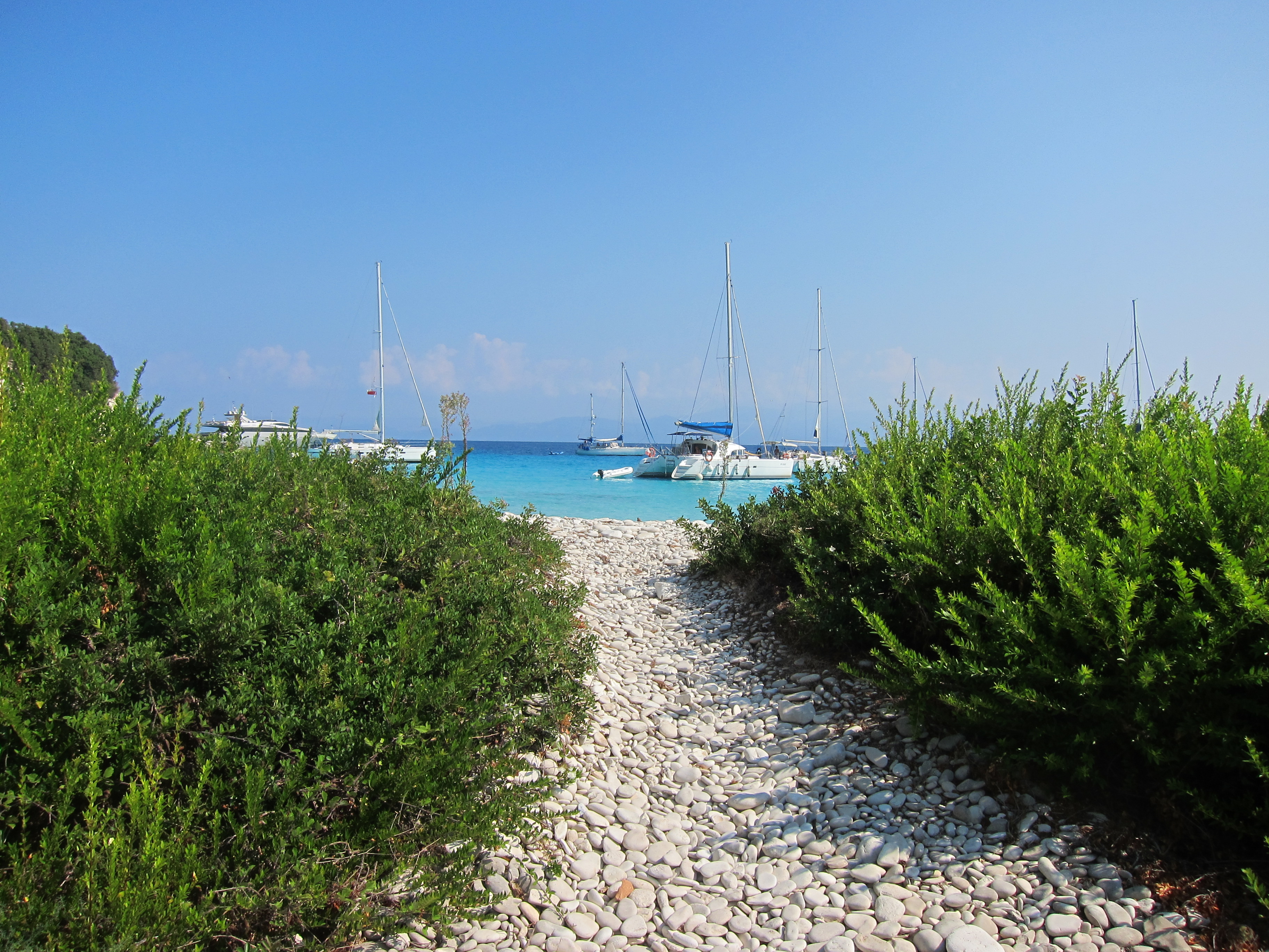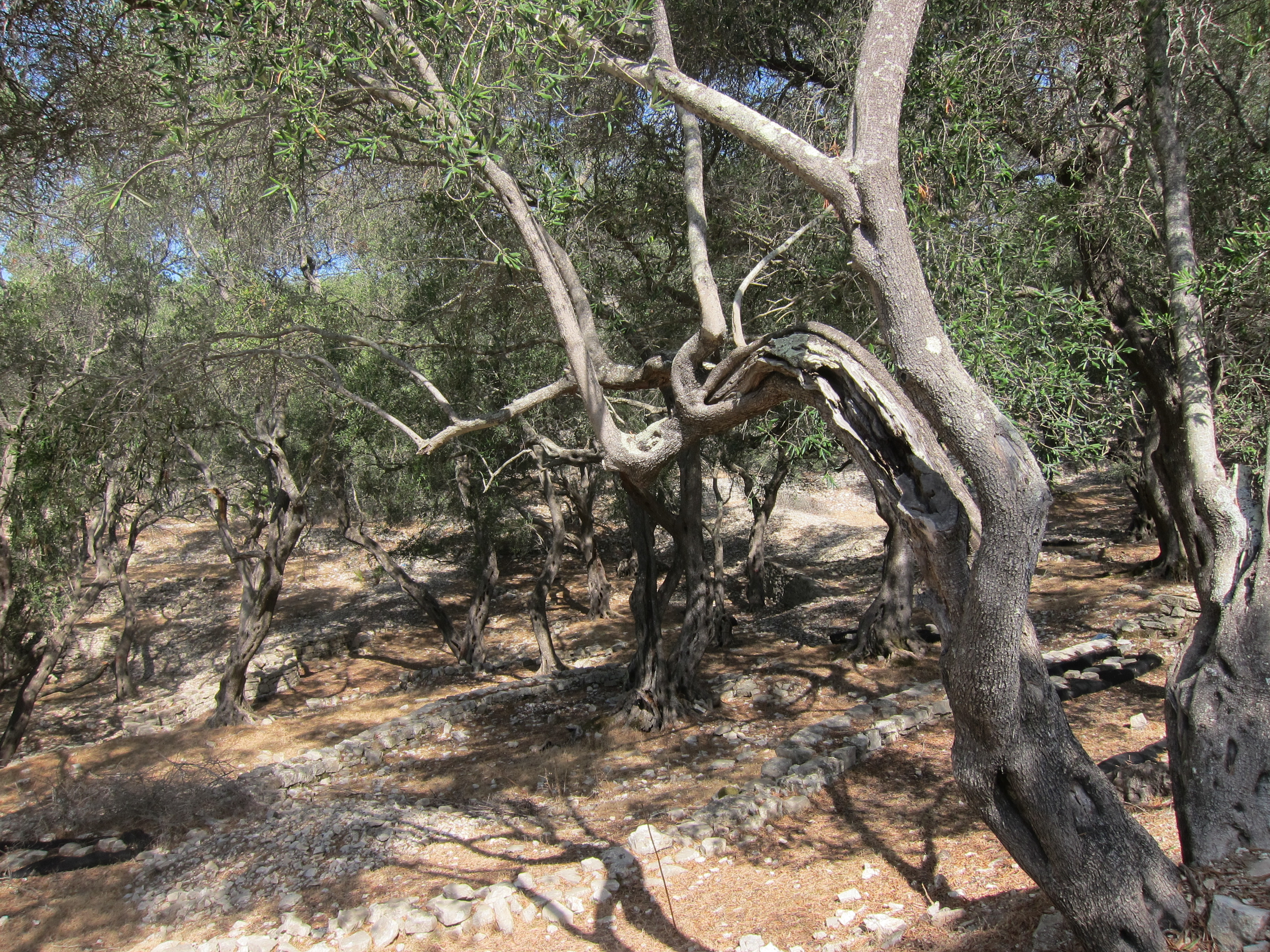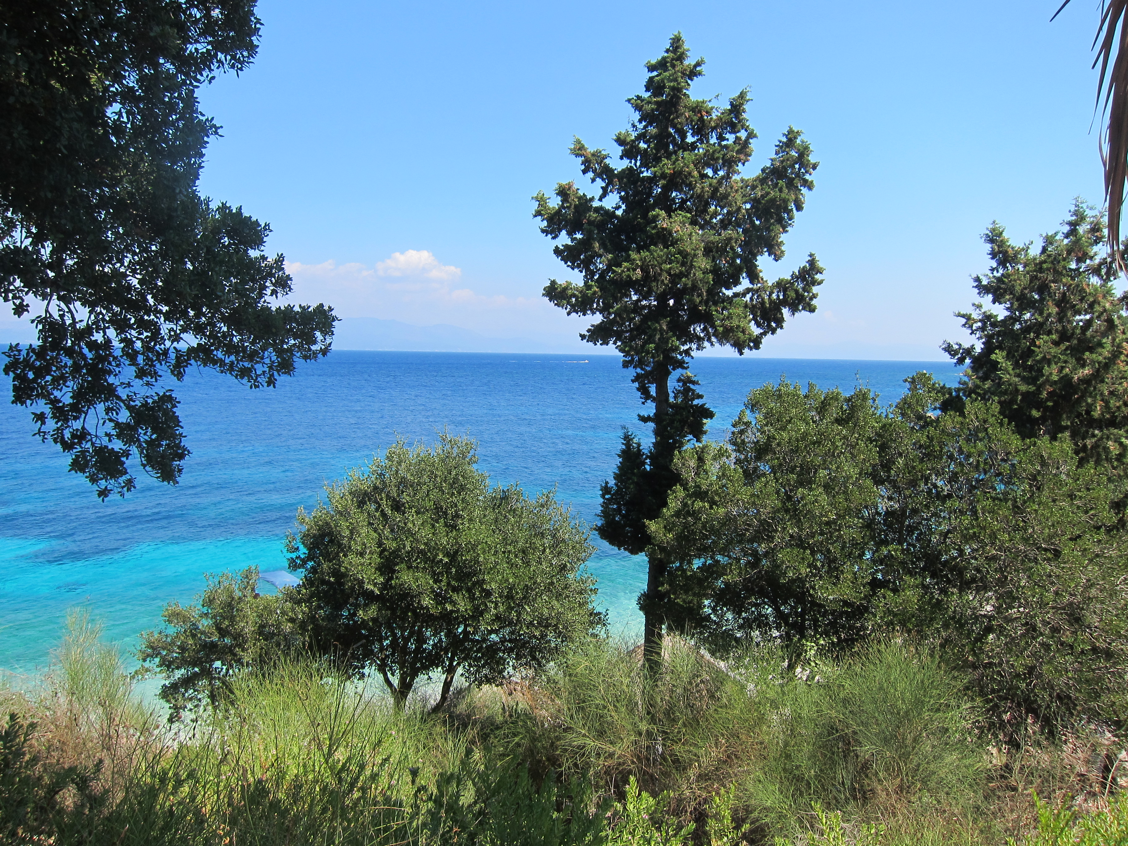 Stone terraces created by the Venetians for olive growing and some viticulture…ruins…ancient olive groves…a remote cove with a goat herder, two fisherman and me…rough roads and lane ways…Greek Orthodox churches and their bell towers…Lunch waterside at Lakka…Donkeys who loved a good pat…