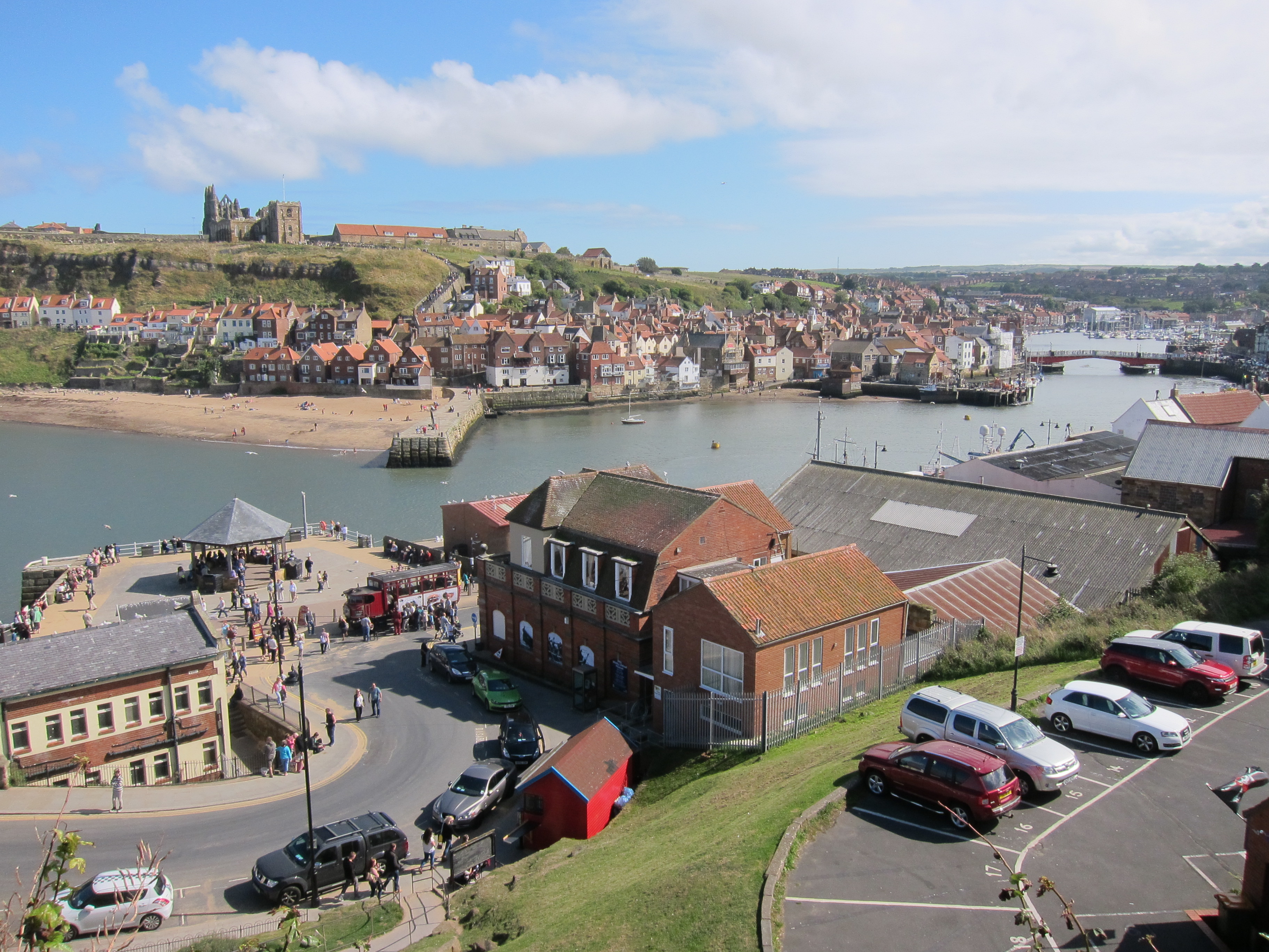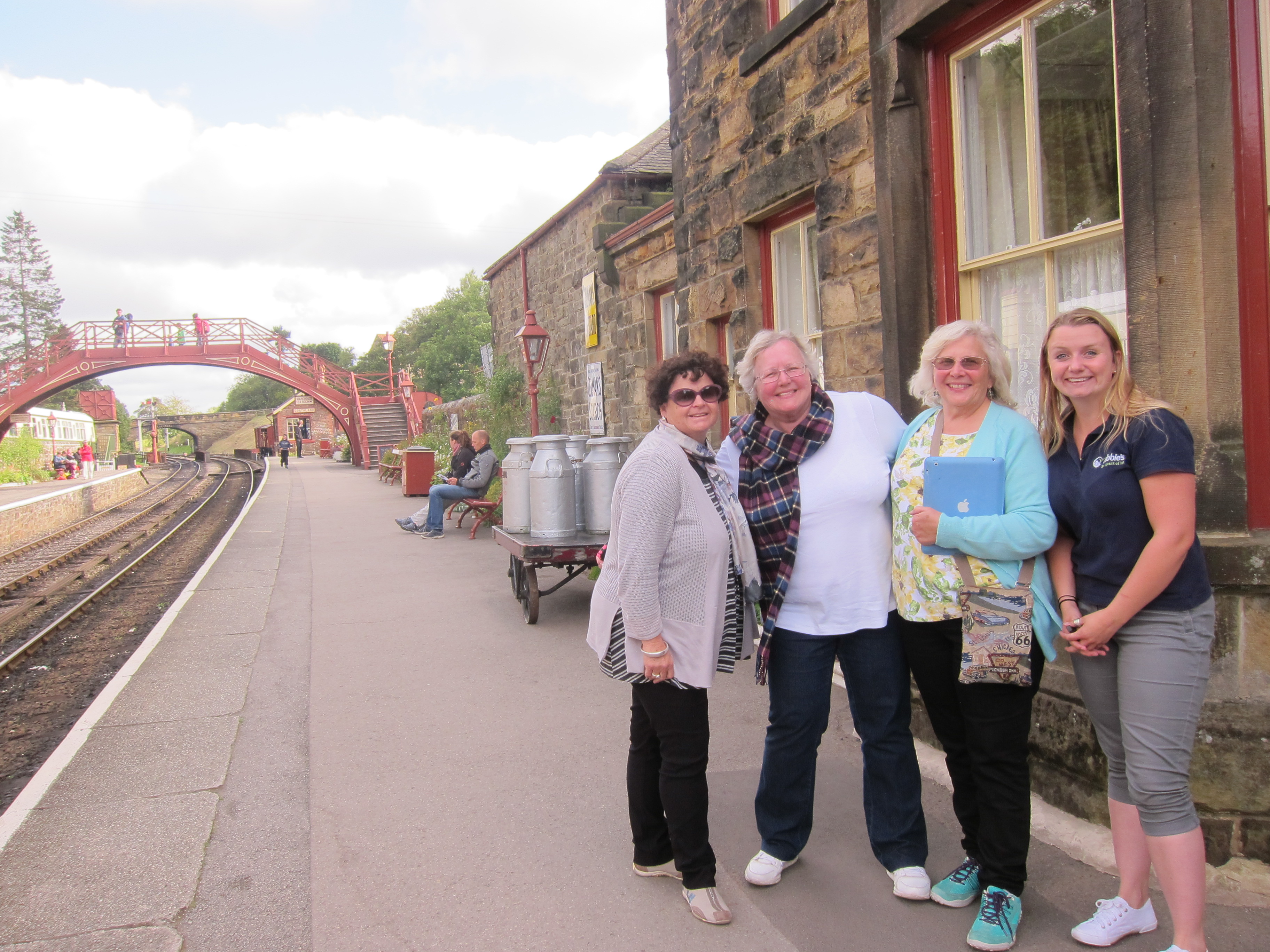 Spent the morning in the fascinating streets of York…didn’t know that Kit Kats and Smarties originated here as part of the cities chocolate history! Joined a ‘new’ tour and drove through the North Yorkshire Moors to theseaside town of Whitby, a bustling fishing port and tourist destination. The sun was shining and everyone was out…on the beach, crabbing, eating fish and chips, ice creams and walking the streets. I also learned that Captain Cook came from here and the Endeavour was built here so I paid homage to his statute, complete with seagull on his head! Its a fossil area and they get semi precious ‘jet’ here which is fossilised Monkey Puzzle Tree. Nice jewellery!! Robin Hoods Bay was a tiny old smuggling village further down the coast and we visited Goathland where the railway station featured in Harry Potter Movies (Hogsmeade?) and the village was that of “Aidensfield” in Heartbeat.