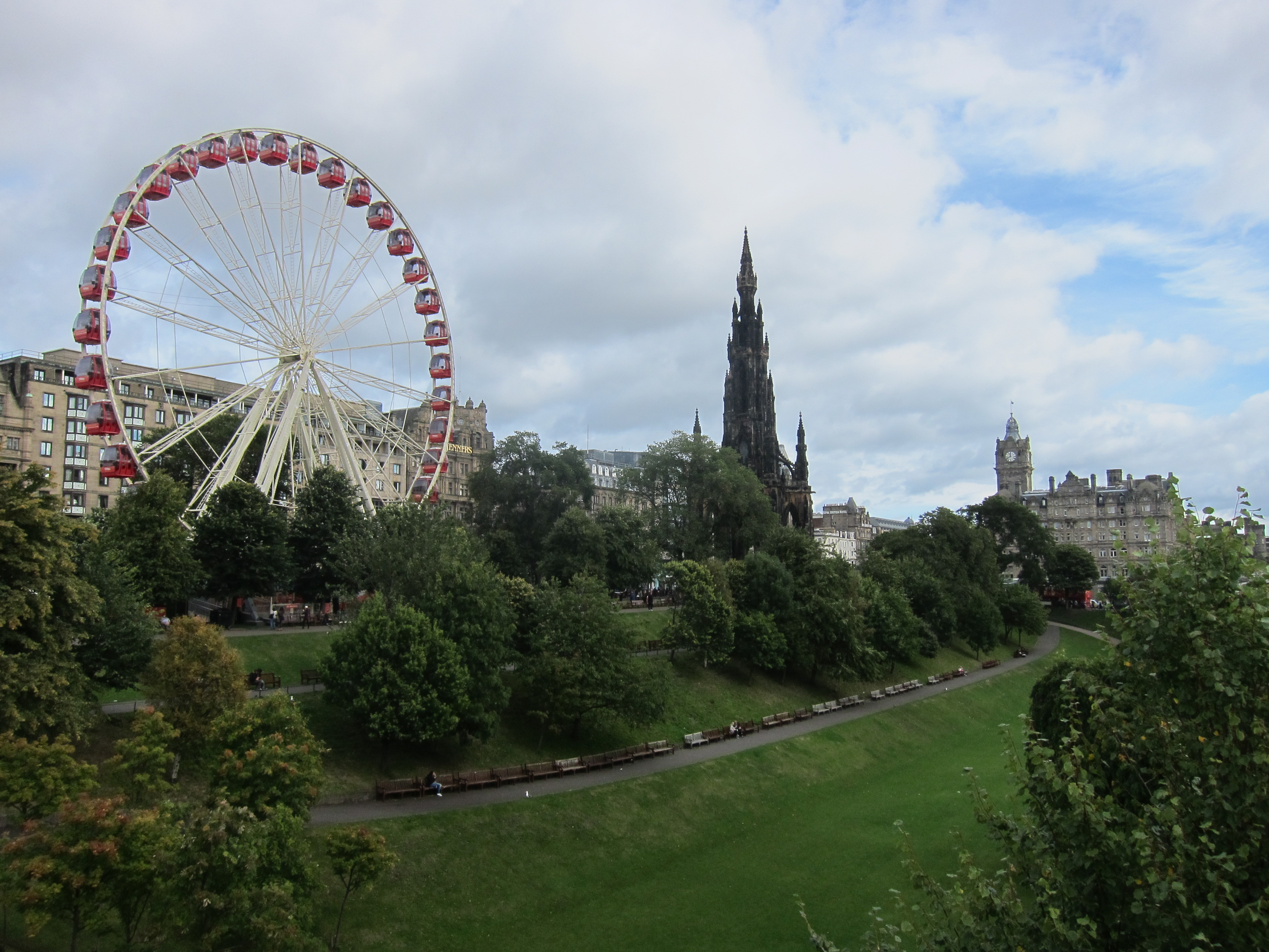Travelled via a high pass to what is left of the great Roman wall built by Emperor Hadrian and followed it for some way. A lovely pub lunch in a pretty village and visited the house where Mary Queen of Scotts stayed in Jedburgh. Finally passed into Scotland…we might need passports next time? The referendum for Scotland’s independence from the United Kingdom was immediately in evidence with the Yes/No campaign advertised everywhere. Checked into the Nira Caledonia in the New Town part of Edinburgh city and already I’m liking the feel of the place despite the mist and drizzle which I believe is part of the character of the place, although the sun did set and shine over the chimney pots outside my window. Finally some ‘healthy’ food…Scottish salmon and green vegetables!